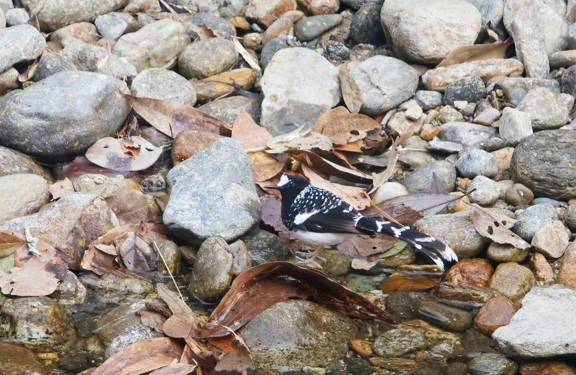 Now we were at a relatively clear patch from where we could see the river bed. We waited here and see if any of the river bed species made an appearance. We must not have waited a minute or two and in waltzed the species I had come to the river bed location for. The spotted forktail had decided to grace us with it’s presence. Good light and a fork tail willing to pose – It made my day! Then it got even better as another one walked in. Till now I didn’t have a single decent photo of a forktail and now I had two in the same frame. Needless to add, I clicked away to glory!