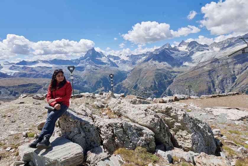 The better half poses at the Stelliseee with the Matterhorn in the background