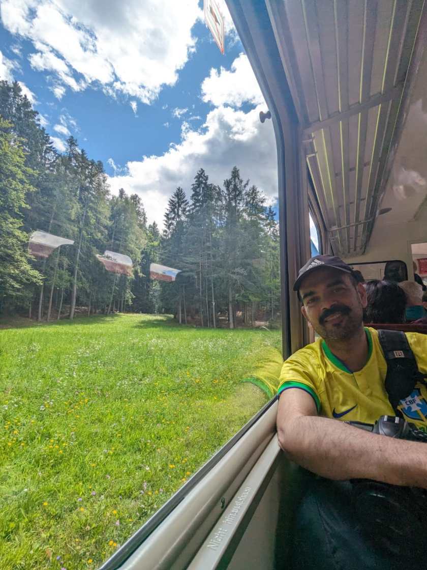 We then walked the way back to the train station where now there were significantly more number of people than when we had reached in the morning. We waited for the narrow gauge train to arrive and got on board the Ritten rail and managed to get window seats for ourselves.
