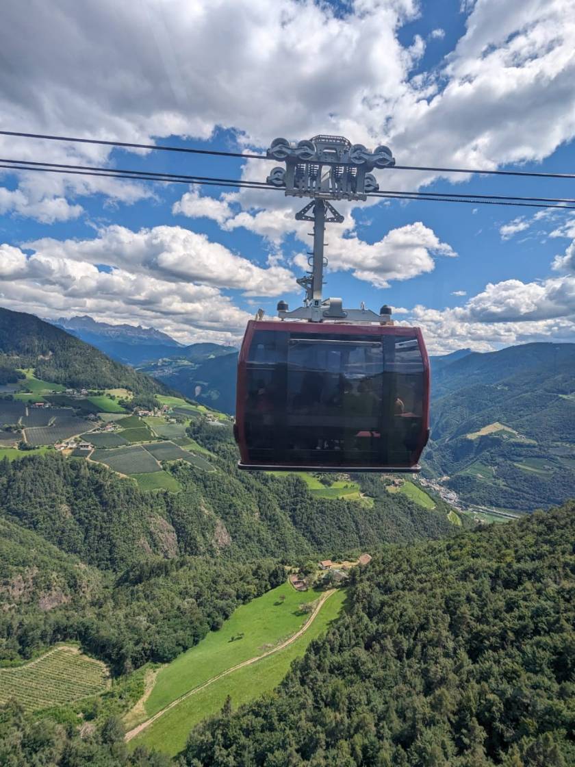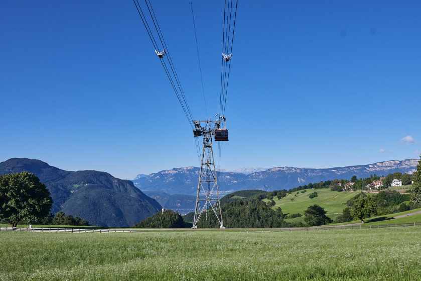 With travel cards in hand we walked to the Funivia del Renon / Renon Cable car station nearby and took what turned out to be the first cable car up. The cable car was almost empty and we had a nice view on the valley and the town below. I thought we had reached the end but it then crossed over the hill we could see from below and continued going across the valley till we reached the other end and what was Soprabolzano. It was a much longer cable car ride than I expected and even if you aren’t interested in hiking the trails the views are worth it.