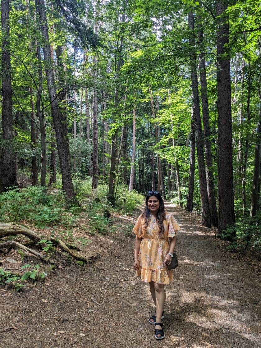 Walking amidst the forest on a well marked trail to the Earth Pyramids