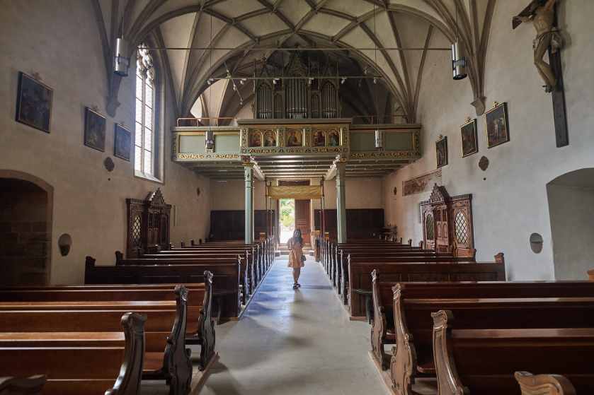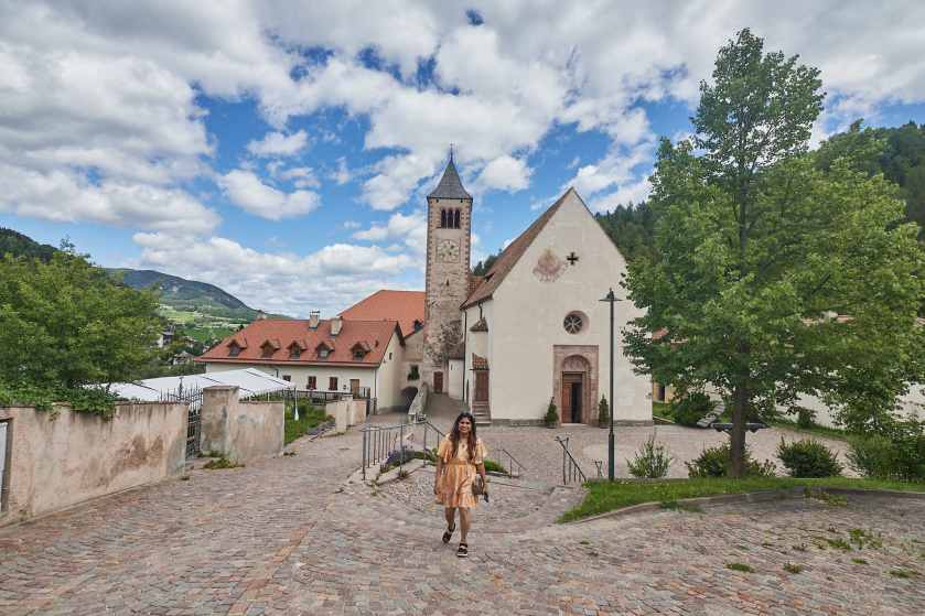 After enjoying our lunch at a leisurely pace we said goodbye to the small town of Longomoso. We were about to take the tar road back to Klobenstein when I spotted the church on top of the town and decided to pay a visit. It was a simple country church with gothic interiors but nonetheless it still had the pleasing symmetry which makes churches a photographers dream. We went inside and did our church routine of sitting in the pews for a few minutes before resuming our way back.