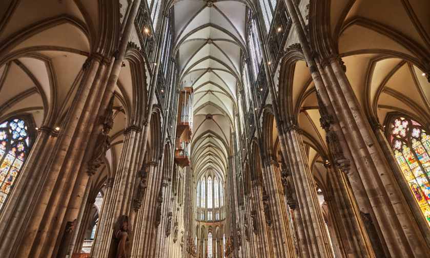 The 140 foot high ceiling of the nave of the Cologne Cathedral