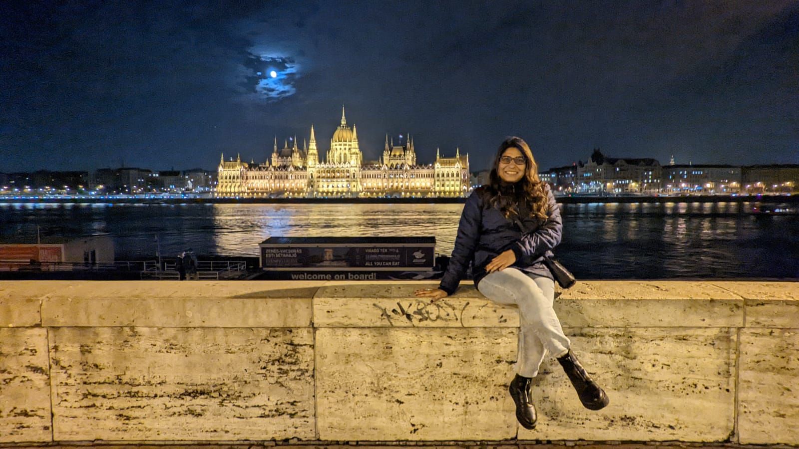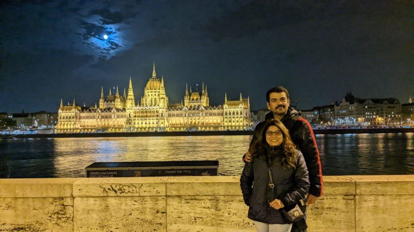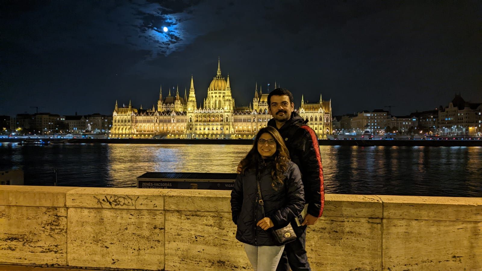 We got a nice surprise on the Buda side outside Batthyany Ter metro where a clear autumn night meant that we had some great views across to the lit up Parliament building with the moon peeking out from in between the clouds. It made for some great photos and we even got a fellow tourist to click a few photos of the both of us with this breathtaking view across the Danube.