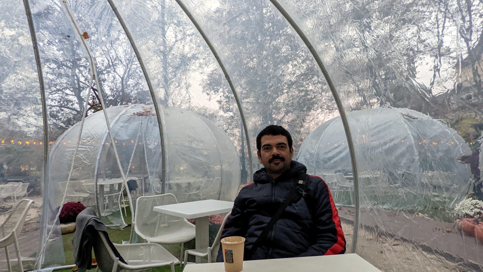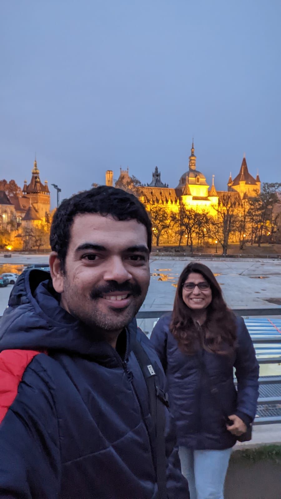 The last of the architectural styles on display was a Renaissance styled castle replica which mimics a castle in Transylvania. We reached the bridge towards the castle and were about to go over it and out of the castle when we saw a coffee house in the park which had heated plastic domes to sit and enjoy the coffee in. It was getting chilly now and we decided to take a coffee break before returning to Heroes’ Square.