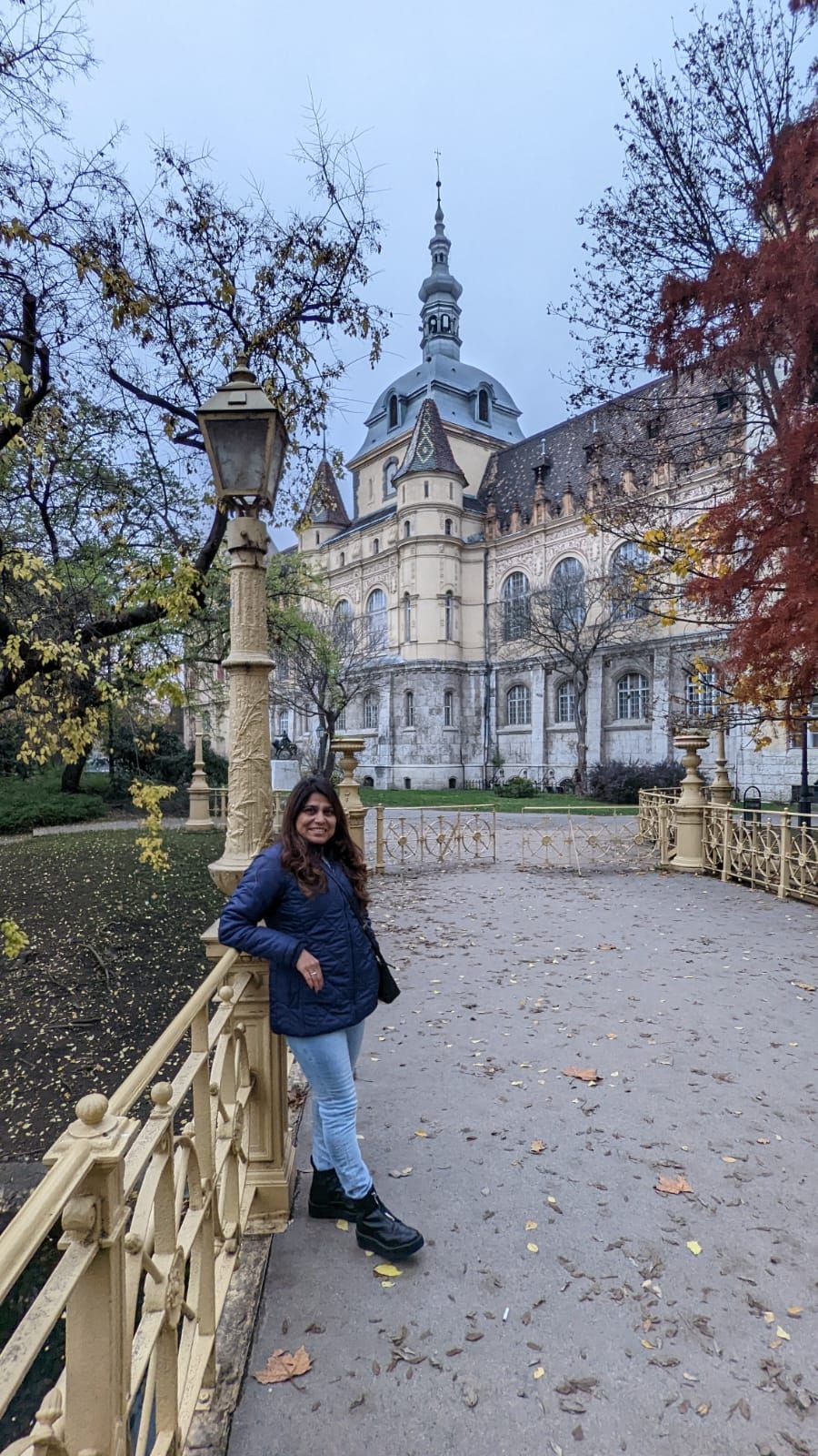 The city park in Budapest is different from parks in other cities. Again the Millennium celebrations of 1896 are to be thanked for that. The Vajdahunyad castle was built as a temporary exhibit in 1896 for the Millennial national exhibition, to be torn down after the fair as most temporary exhibits are. The locals loved the exhibit so much that they insisted it stay and so it was rebuilt in brick and stone and preserved for locals and tourists to enjoy more than a century on. We walked through the green part of the park with the autumn colours on full display till we reached the bridge to the Vajdahunyad Castle.