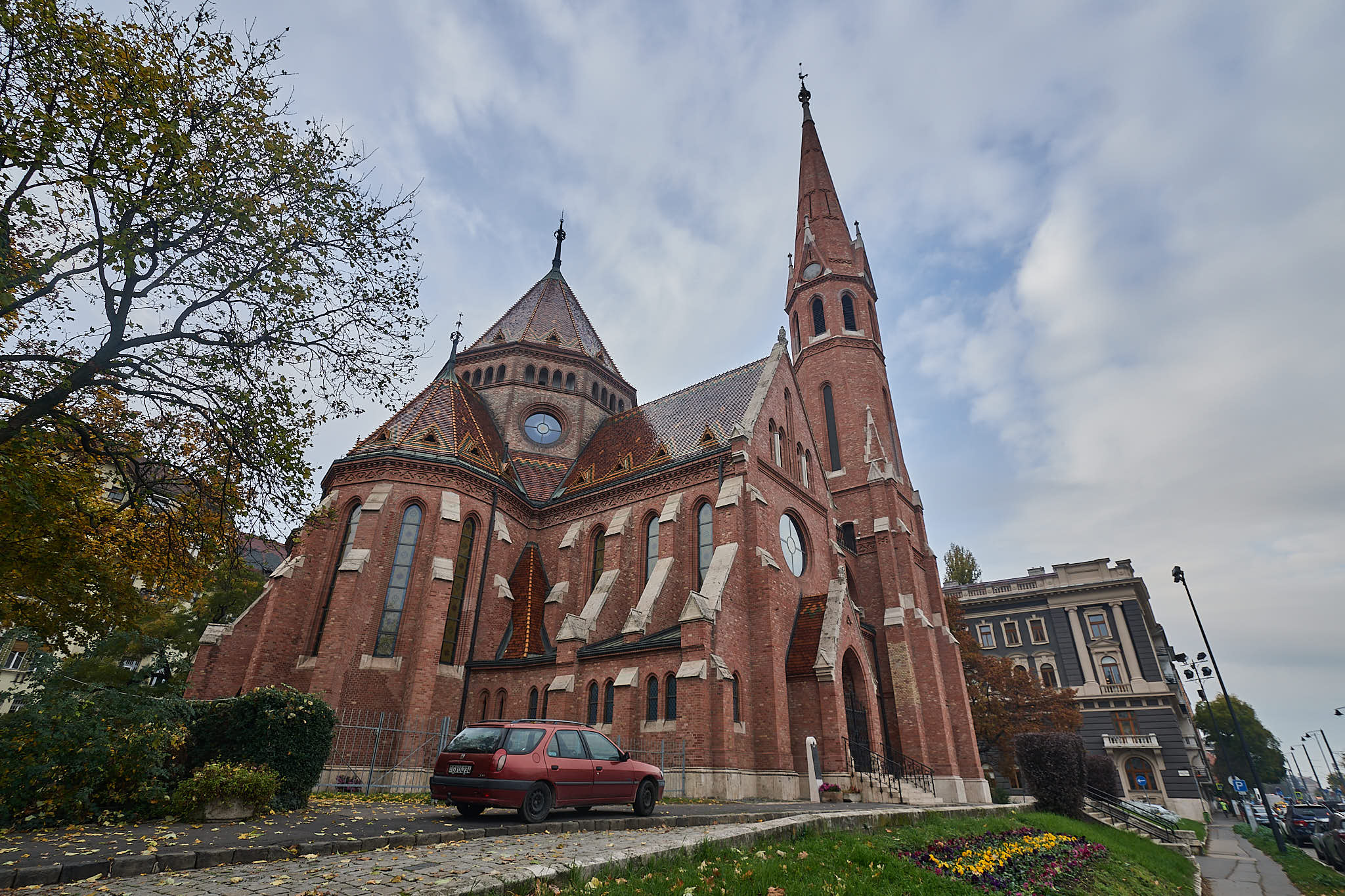 The Szilágyi Dezsö Square reformed church on the Buda side