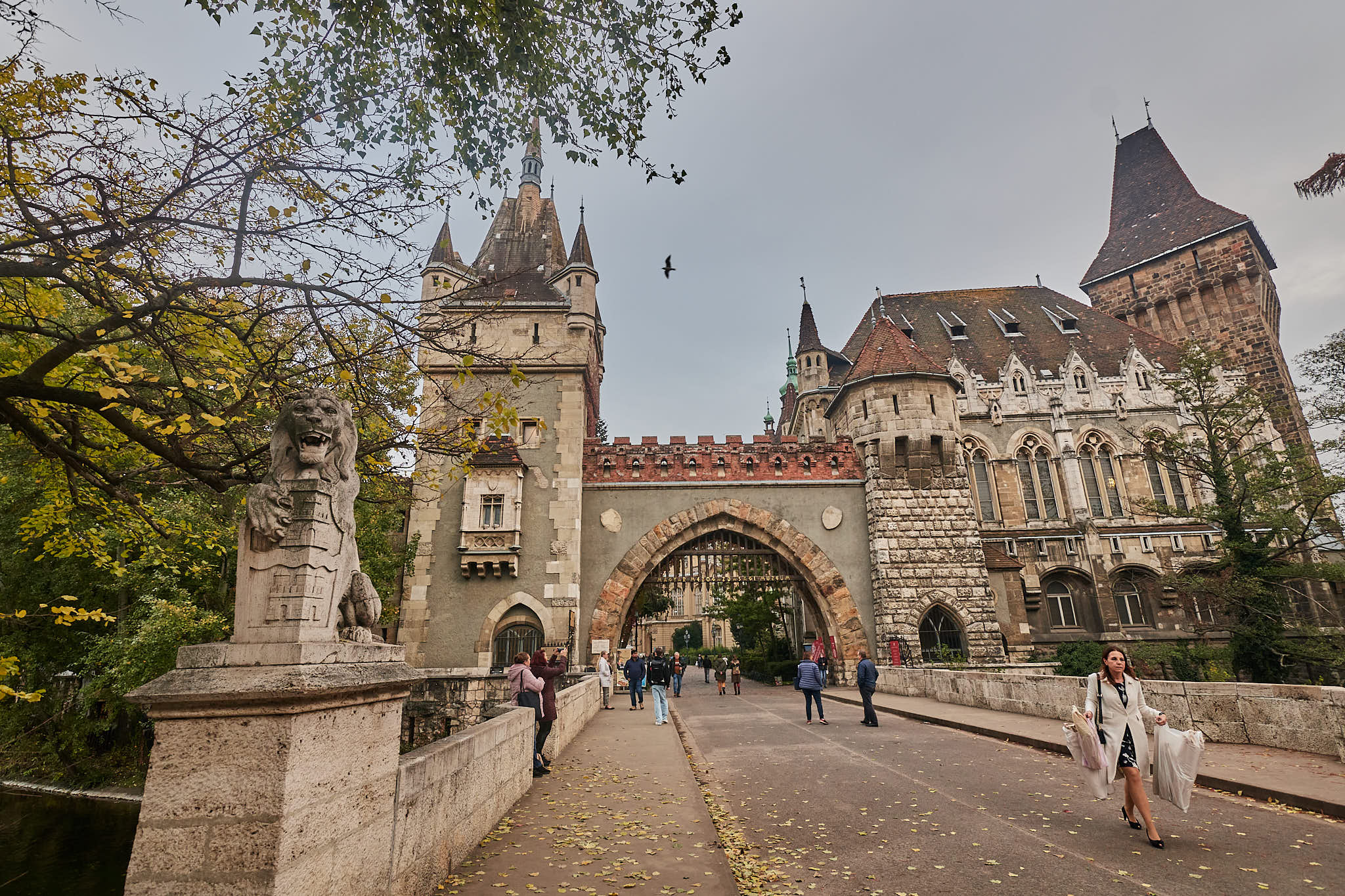 The bridge to Vajdahunyad castle has a Gothic styled gate at the entrance. One of the various different architectural styles on display here. This mishmash of architectural styles makes this place great for photography & there is no entrance fee to walk around the park. The park is very popular with locals and tourists alike so it never felt dangerous to walk around the park even after it started getting dark.