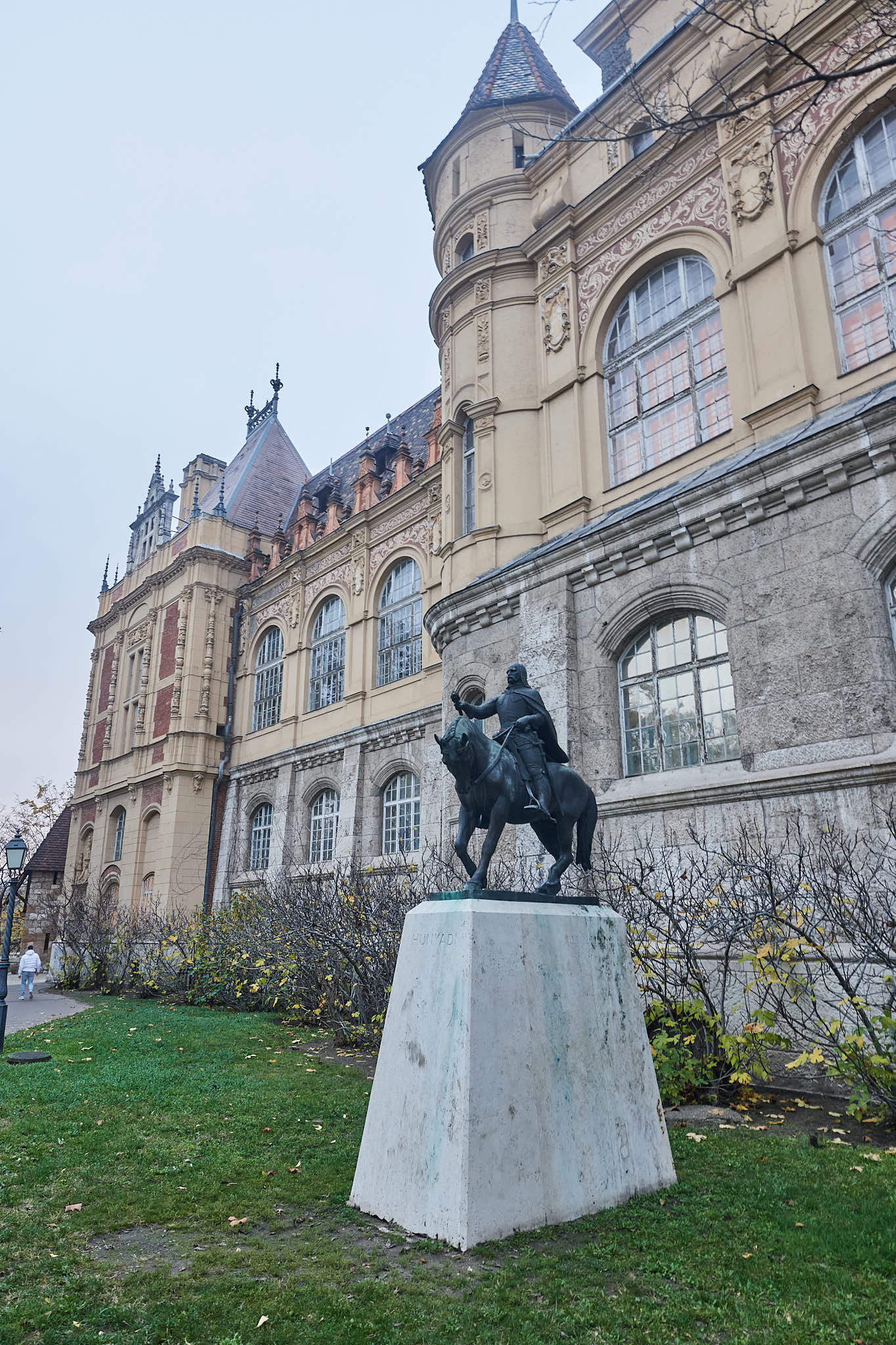 As soon as we entered the gate we came across the replica of a Romanesque styled chapel. We read later that it is a functioning church and apparently a very popular wedding spot on weekends and for good reason. The intricately carved doorway to the chapel made for great photos. There was also a statue of a Hungarian agriculture minister facing the Museum of Hungarian Agriculture, housed in a beautifully reconstructed Baroque mansion.