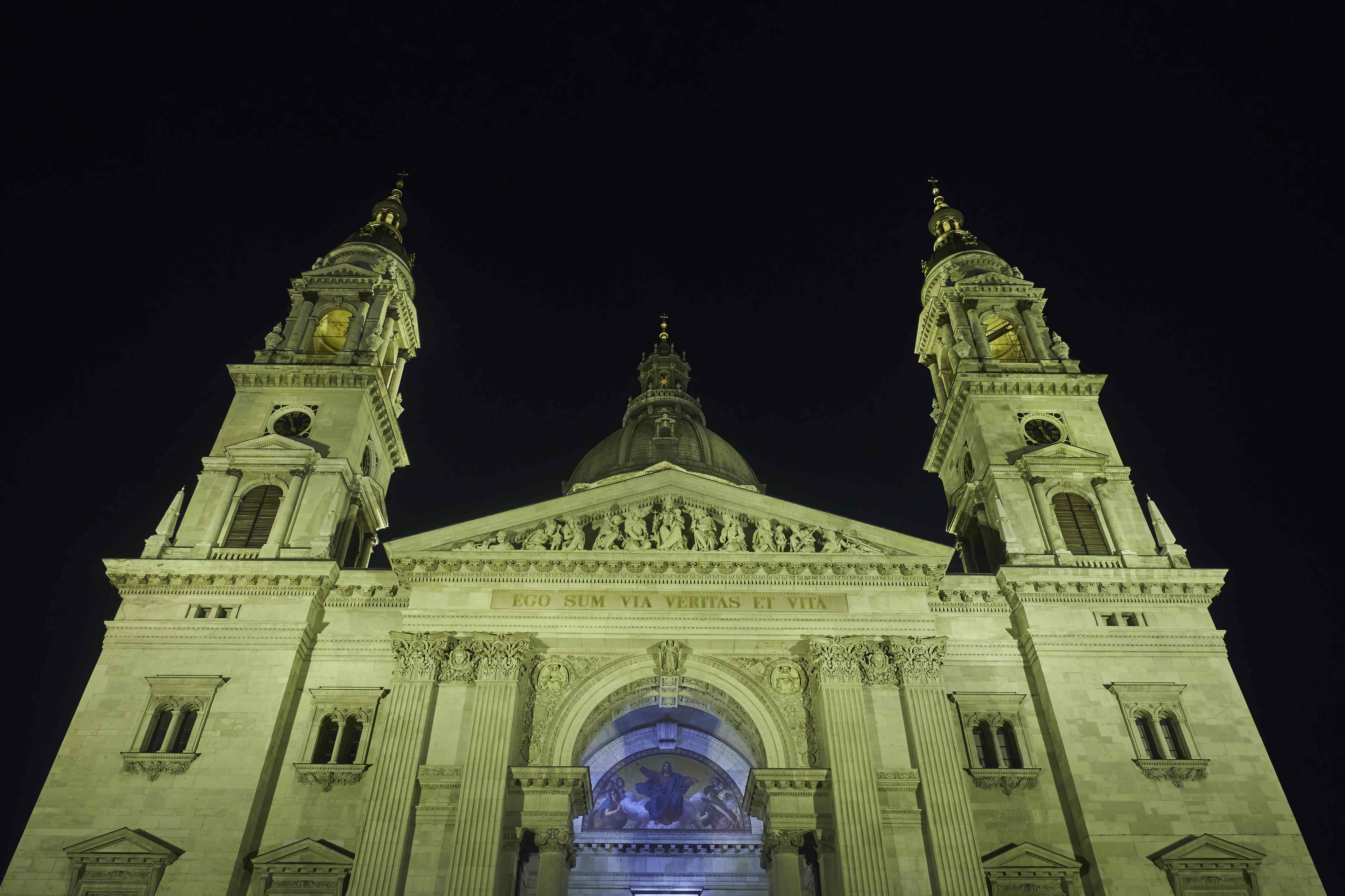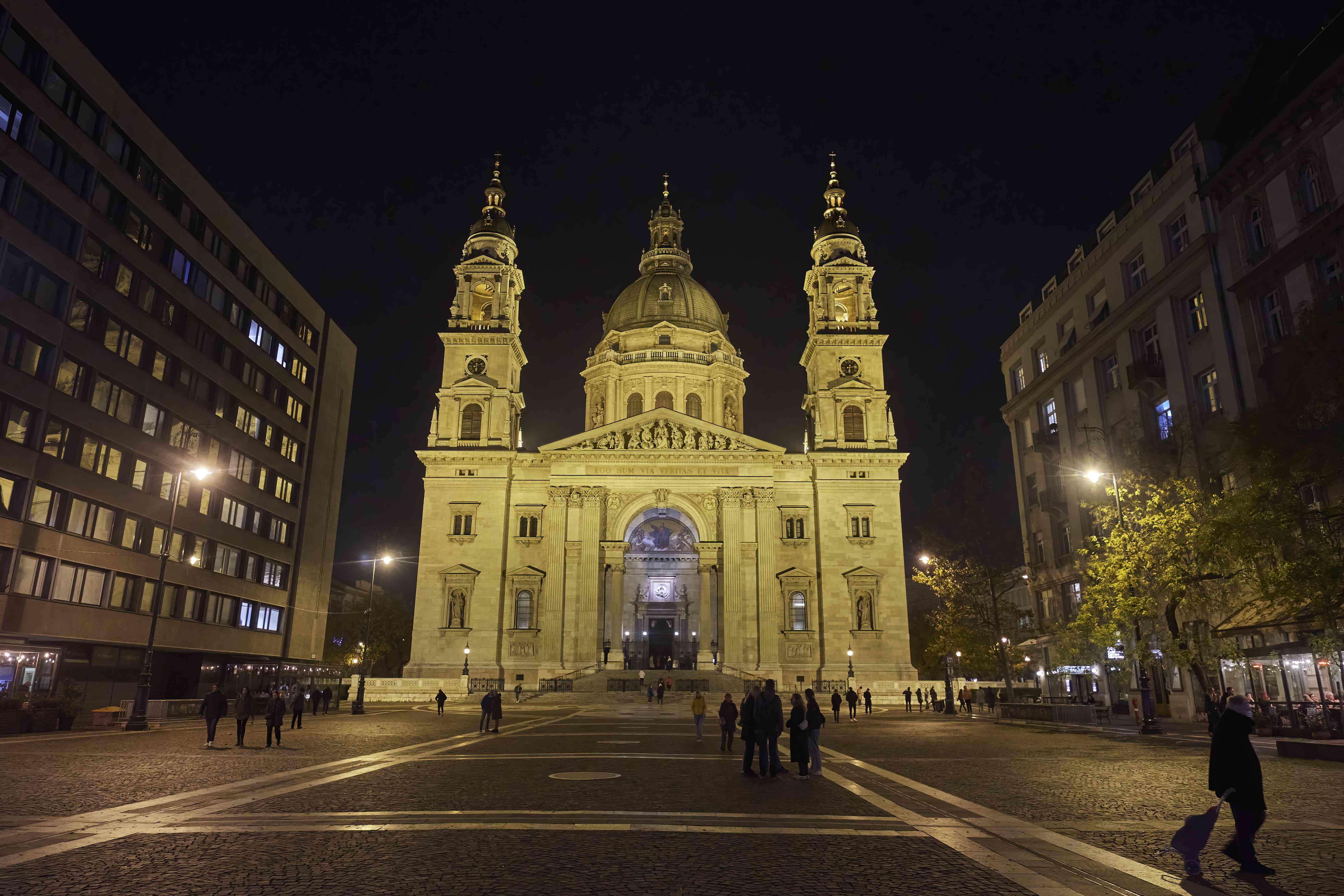 The facade of St Istvan’s Basilica looks even more beautiful at night