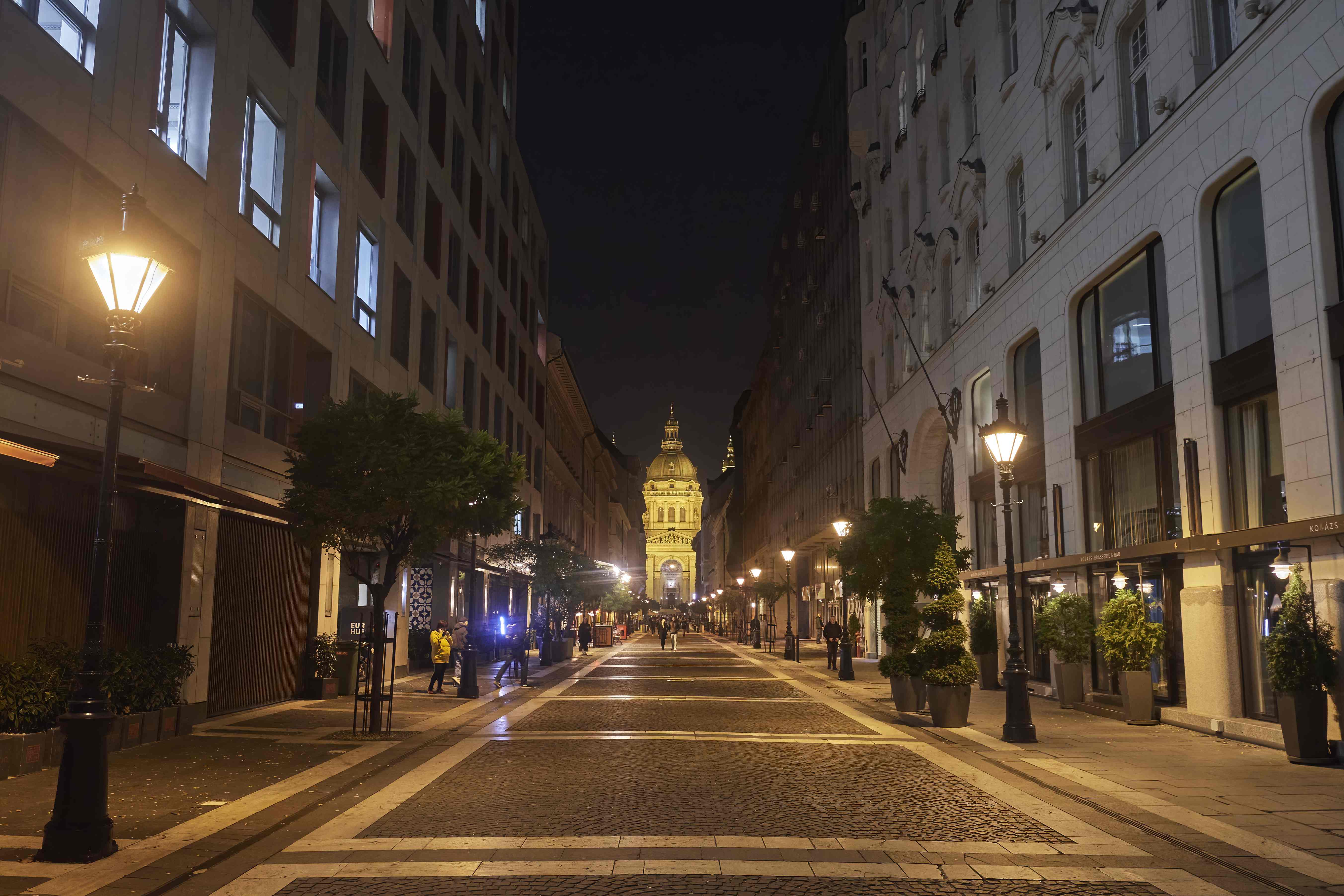 Symmetry is always fun to photograph – St Istvan Ter at night