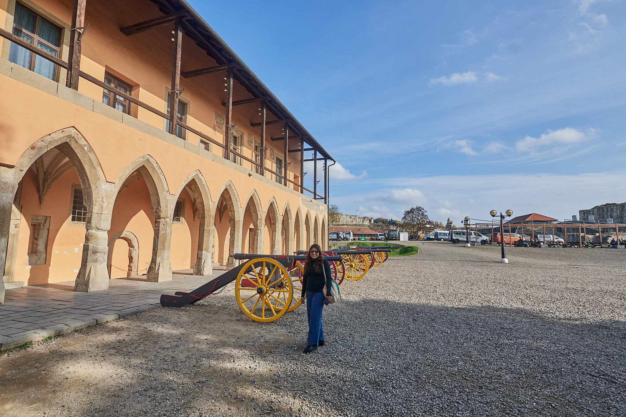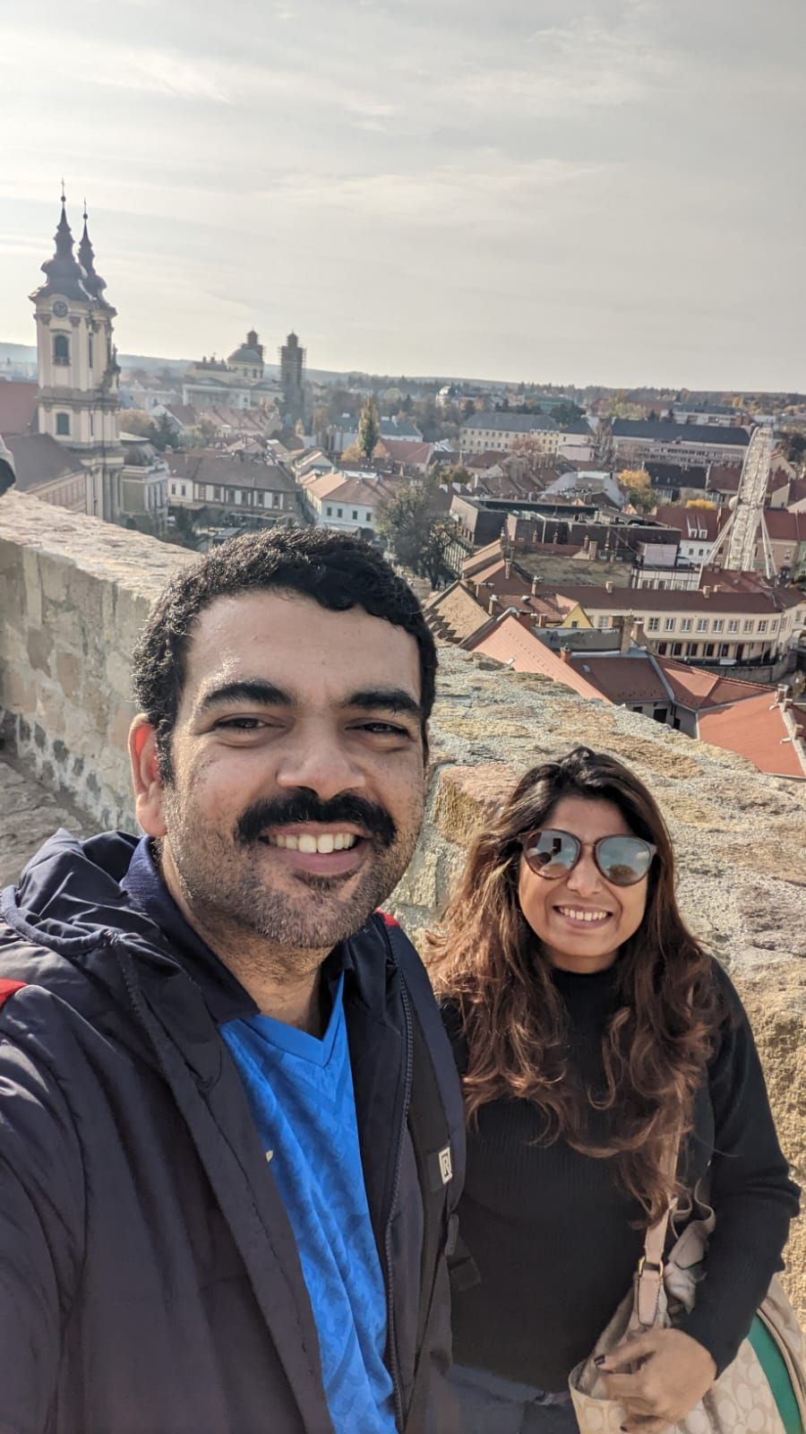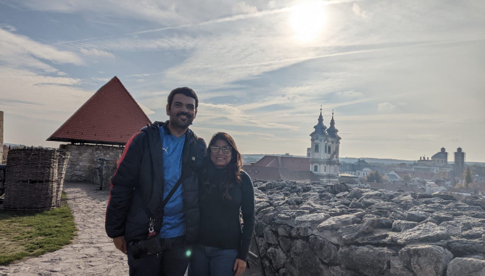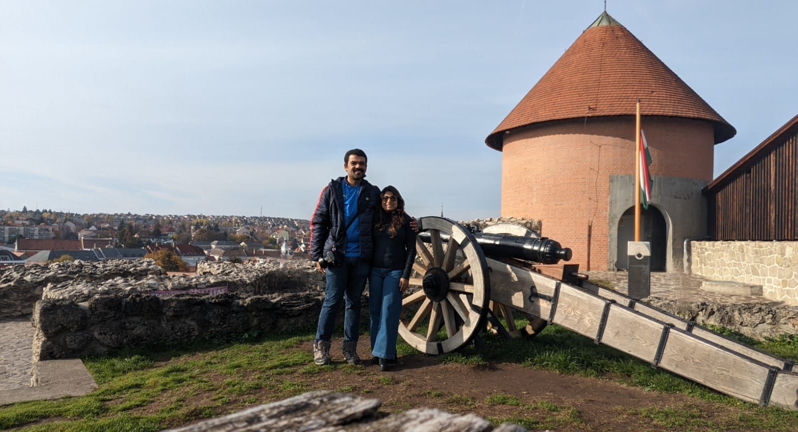 The better half poses at the restored walls of the Eger Castle