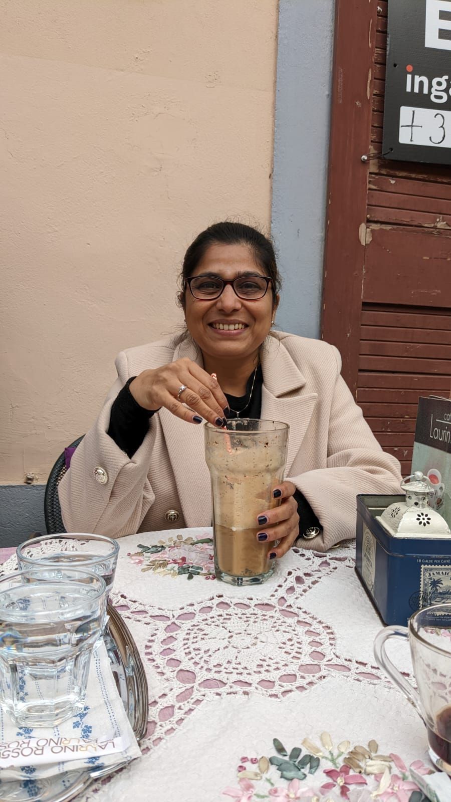 The better half enjoys her glass of iced tea