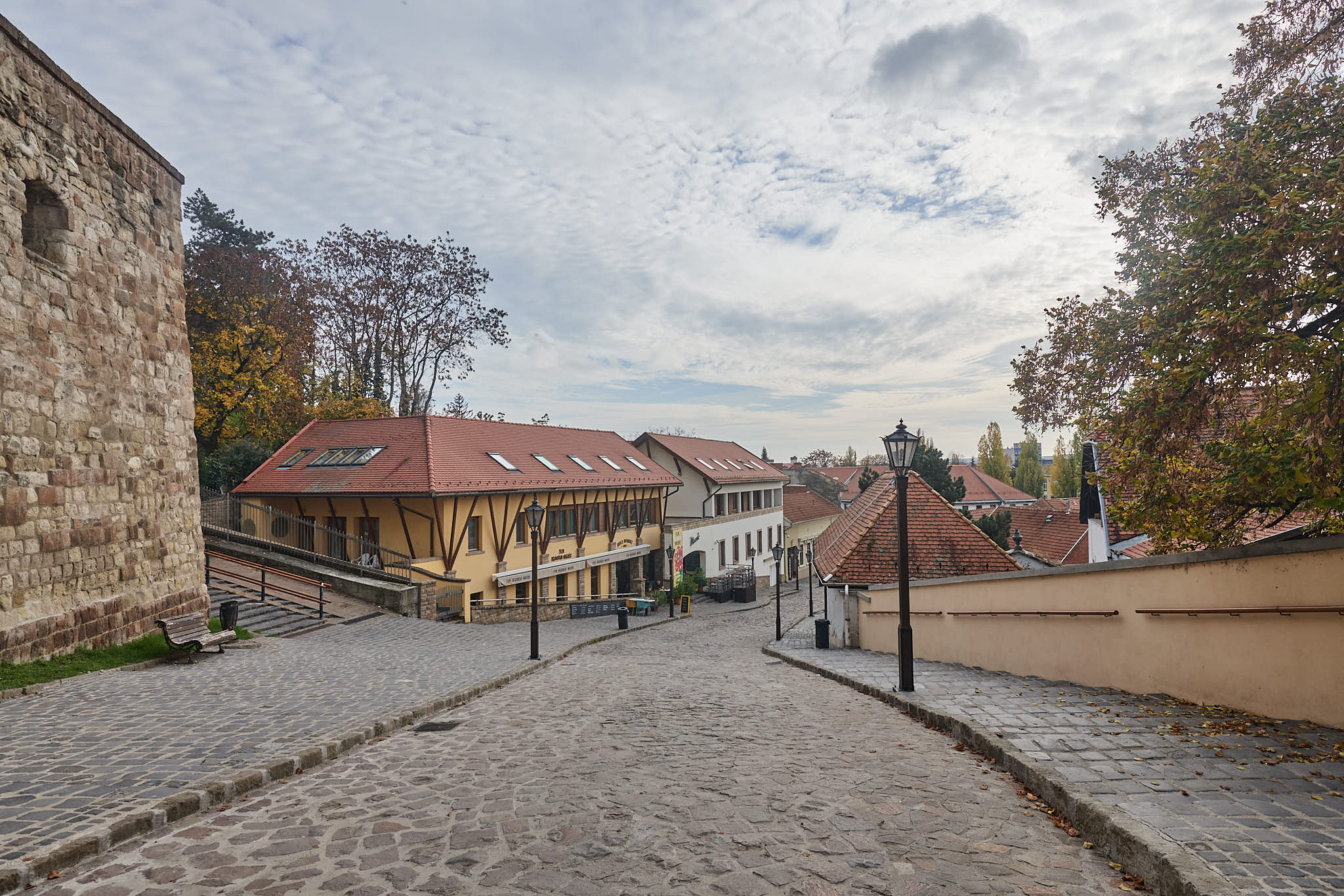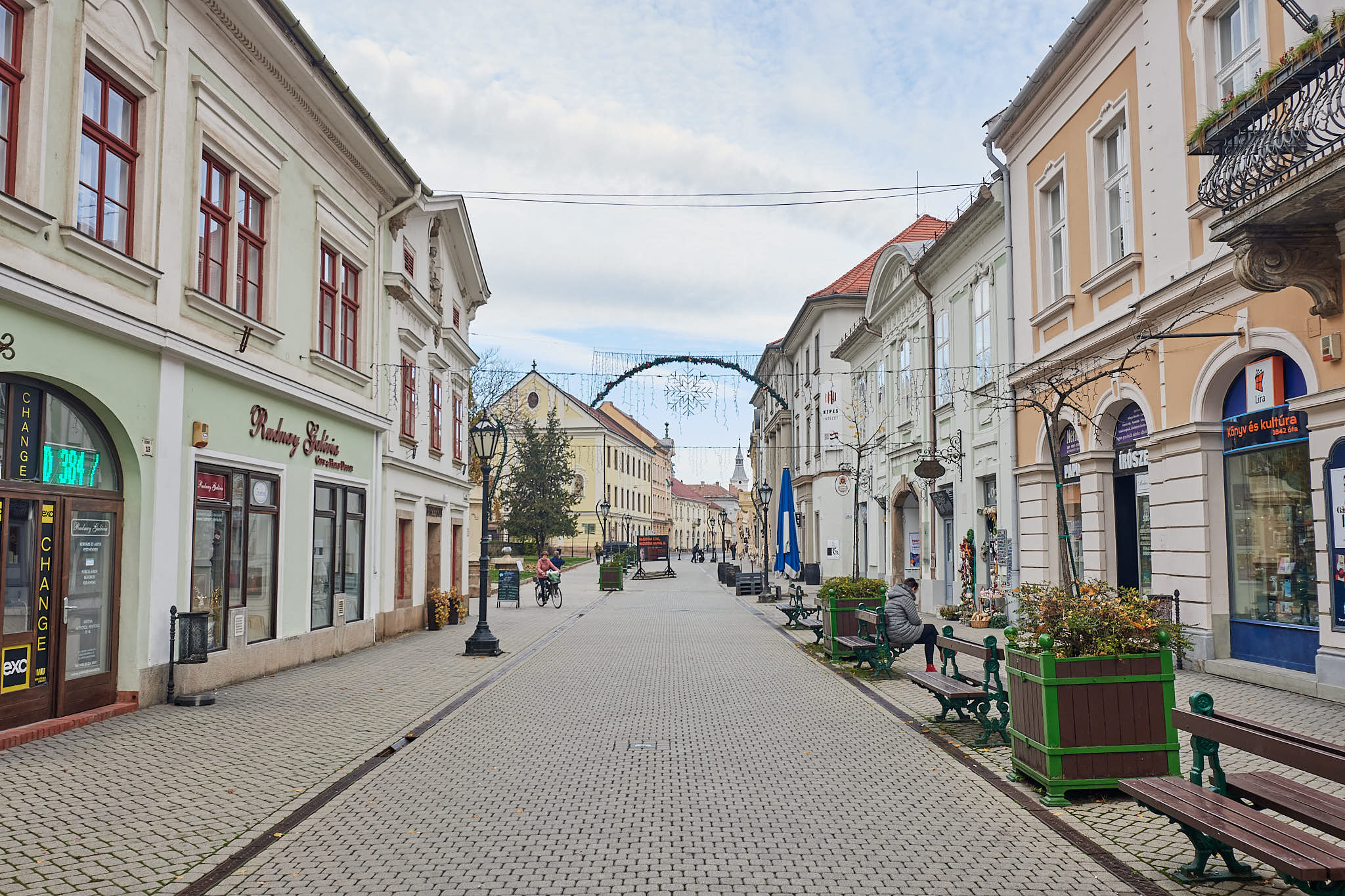 Walking down the pleasant Dobo Utca in Eger