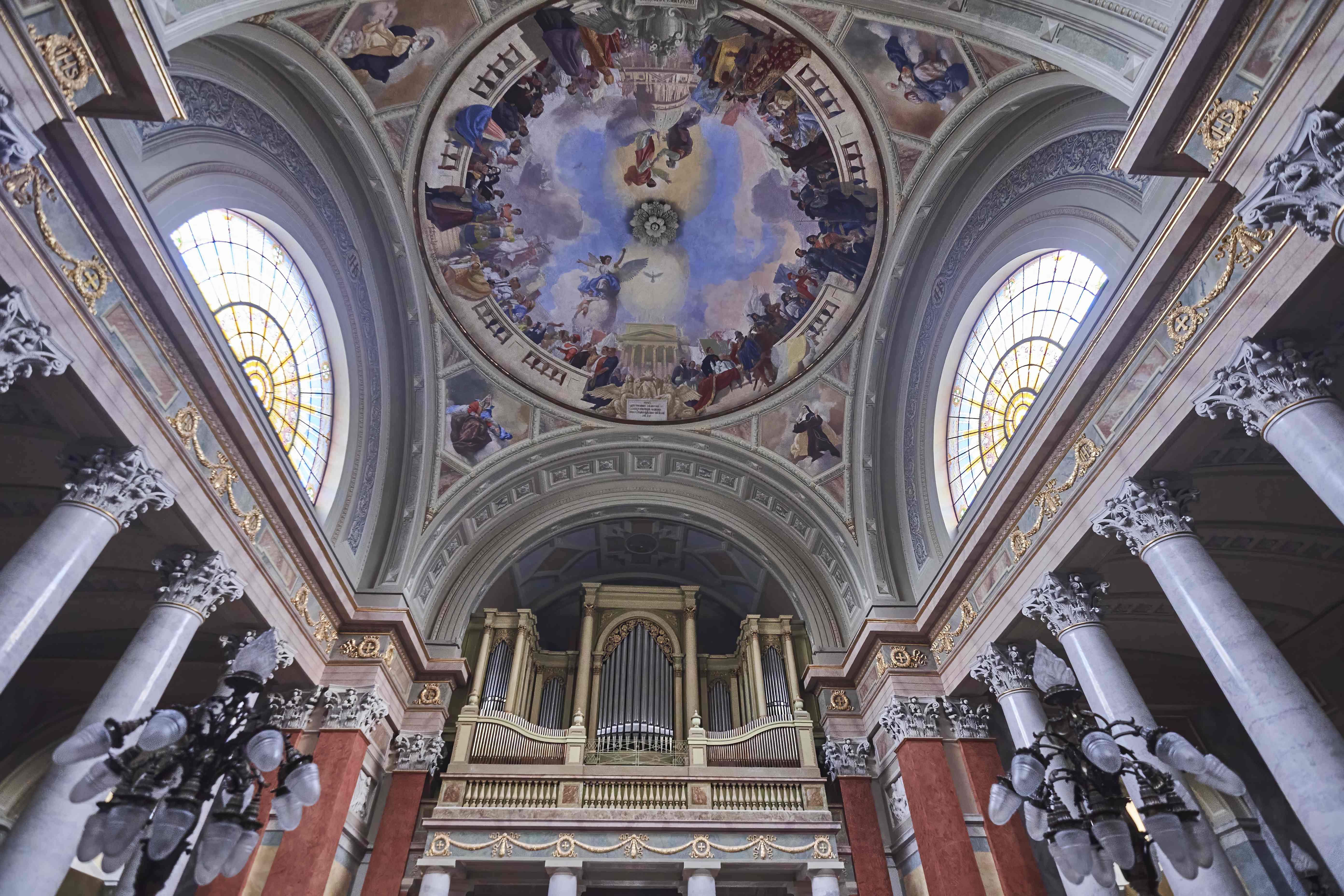 The ornate ceiling fresco of the Eger Cathedral