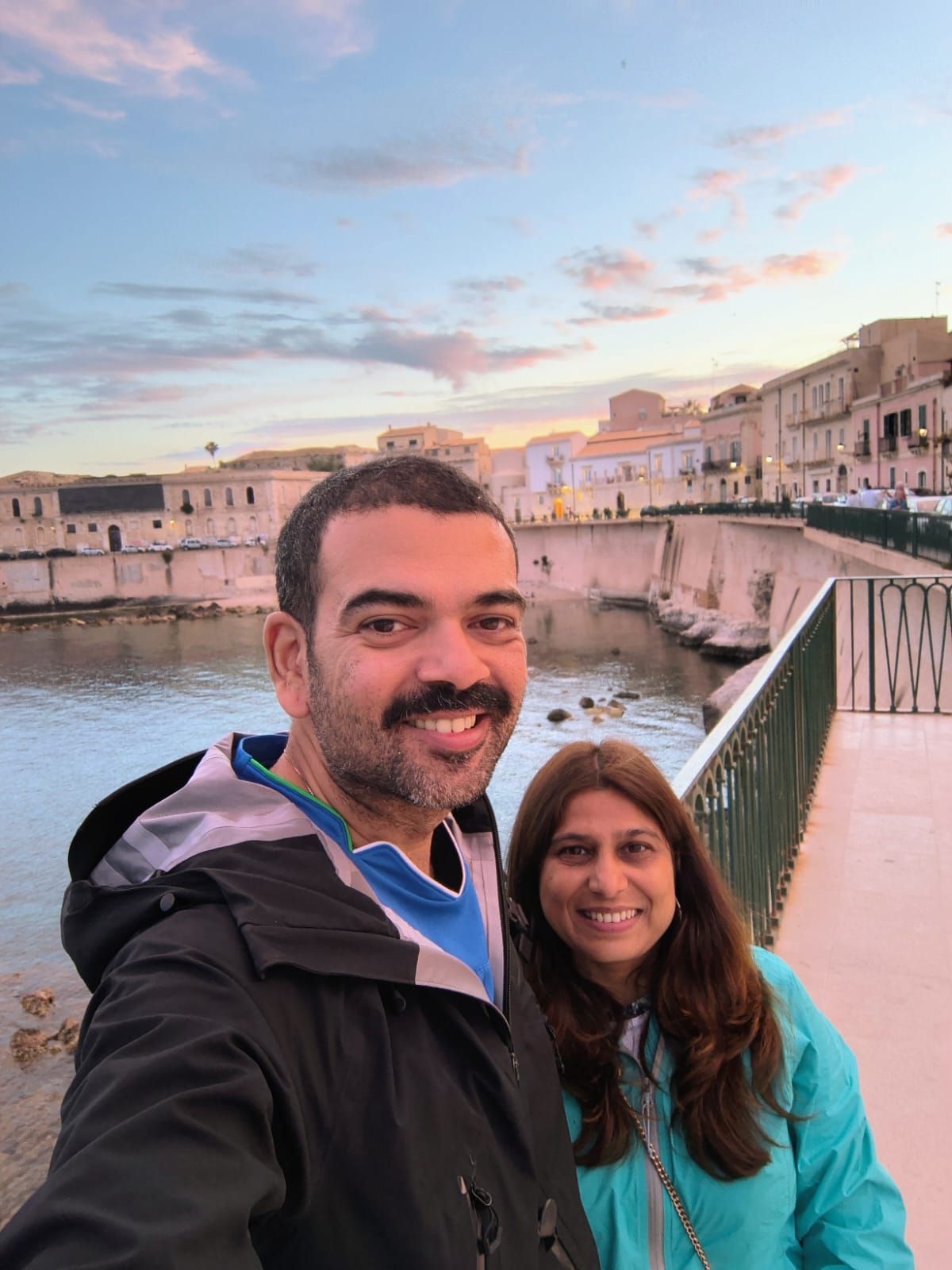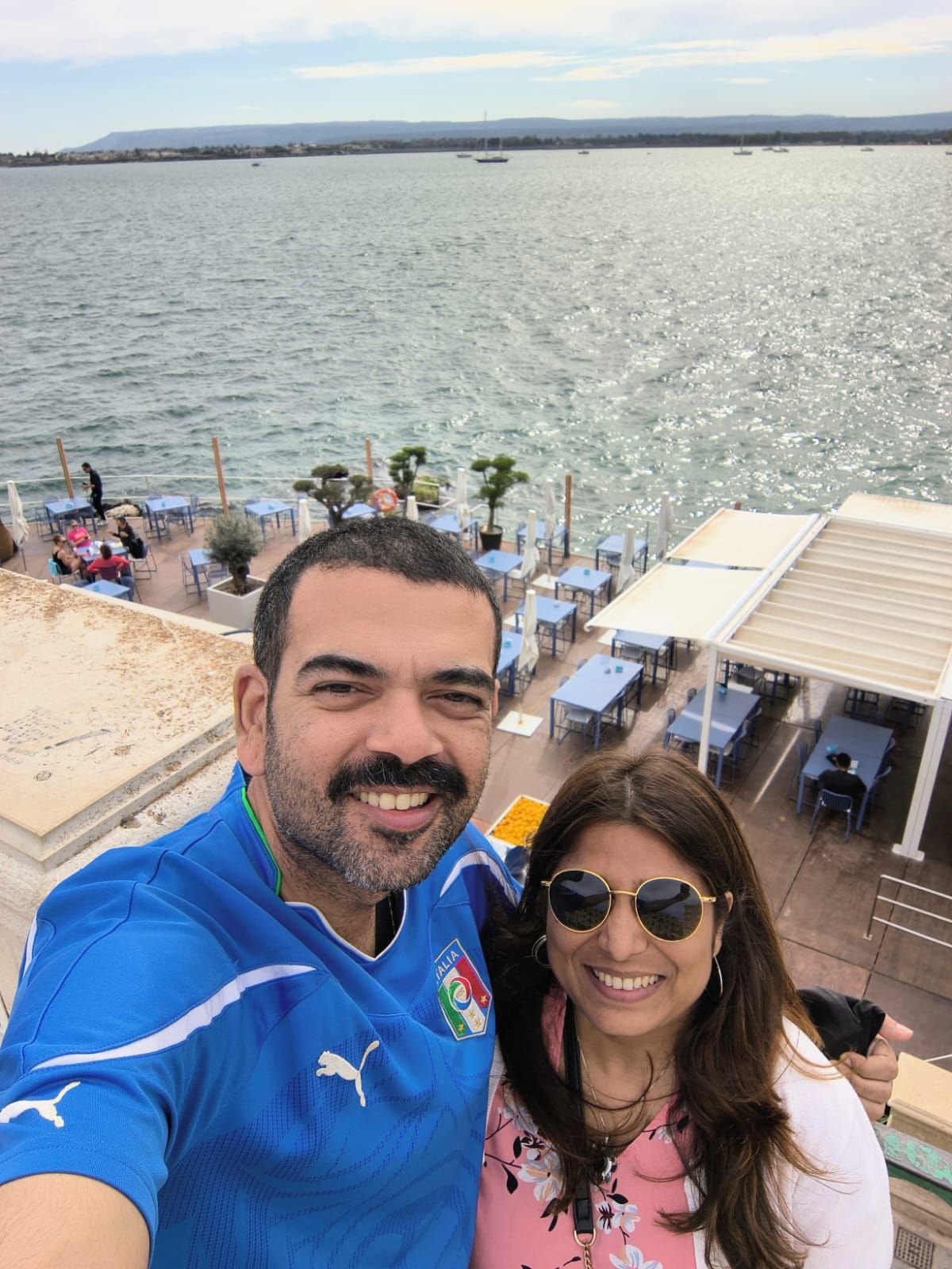 Enjoying the view from our spot along the walkway at the southern tip of Ortigia
