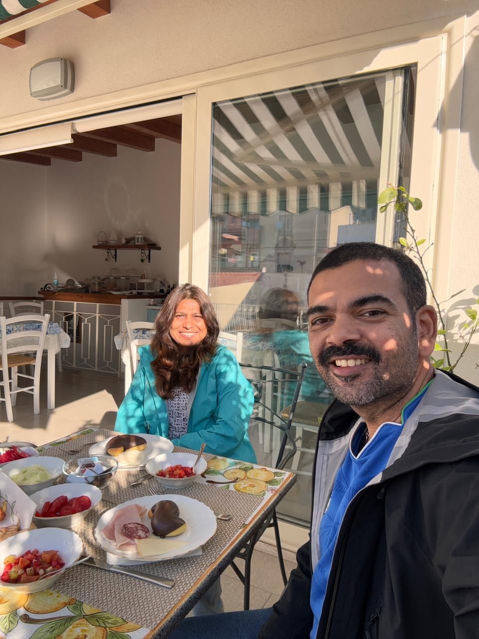 Enjoying our last breakfast at the B & B Evelyne in Taormina