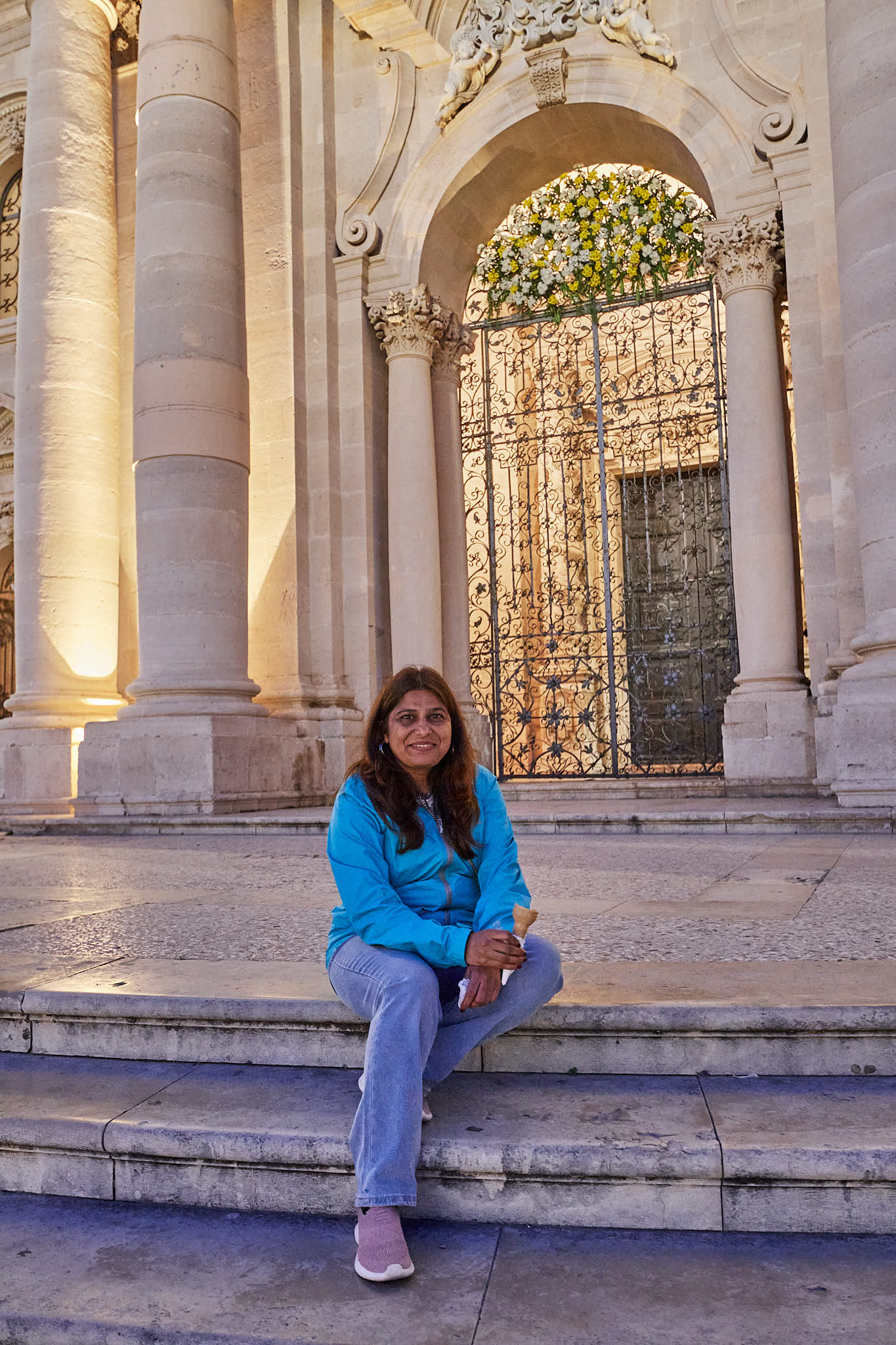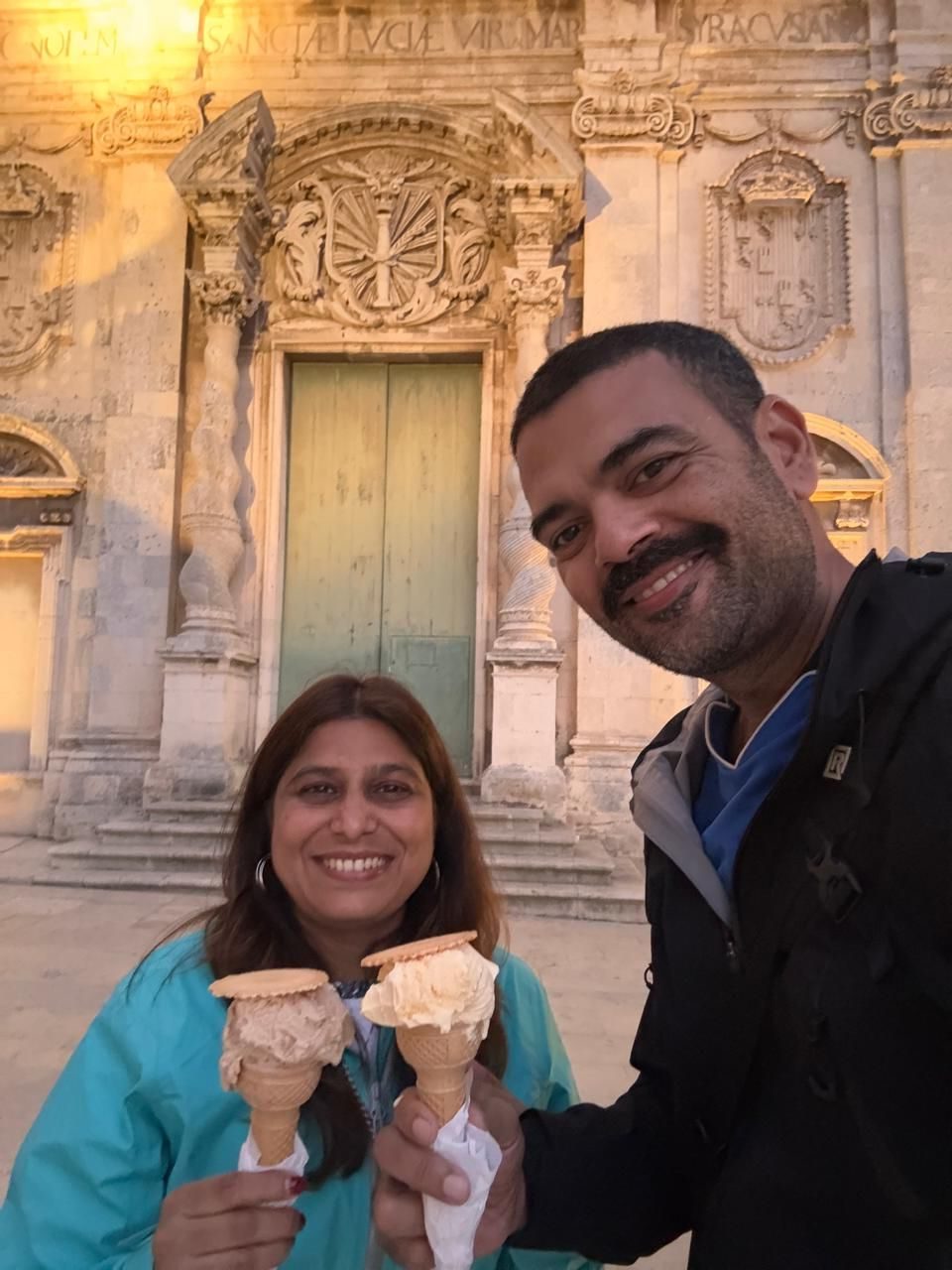 Enjoying our Gelato on the steps of the Duomo di Siracusa