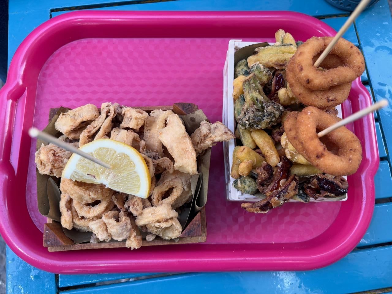 My fried Calamari and the better half’s fried veggie platter