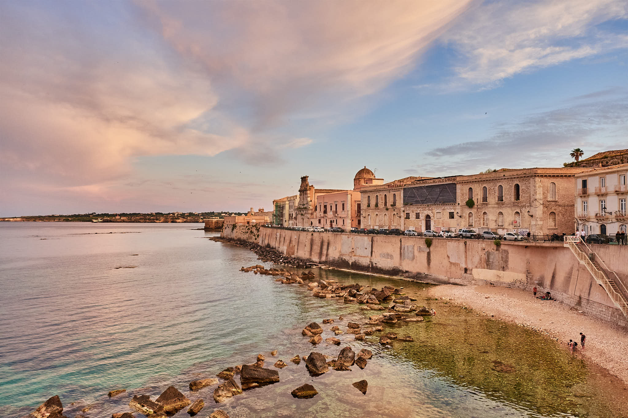 Beautiful skies and the Golden light of dusk makes Ortigia look even prettier