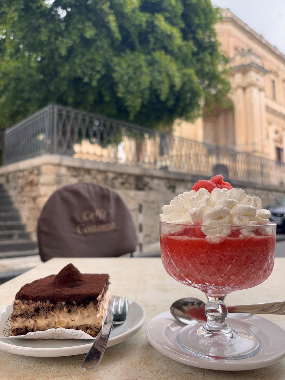 All that walking had put us in the mood for some dessert and we went to the Caffe Costanzo a famous Gelateria and Pasticceria in Noto. We ordered a strawberry granita with cream for the better half while I ordered a coffee and a tiramisu. It was a great way to end our first walk through the Old centre of Noto.