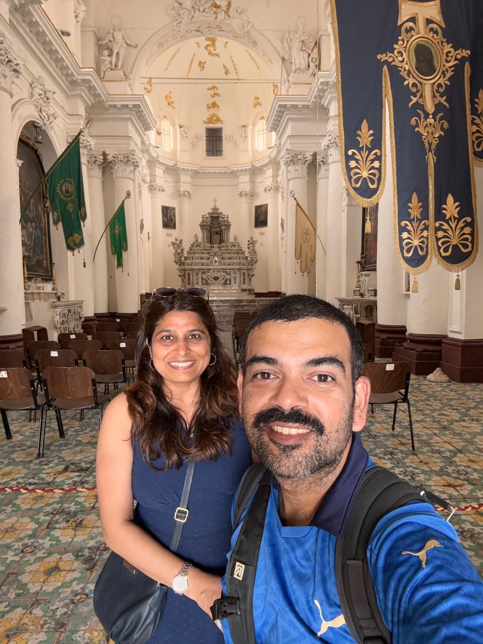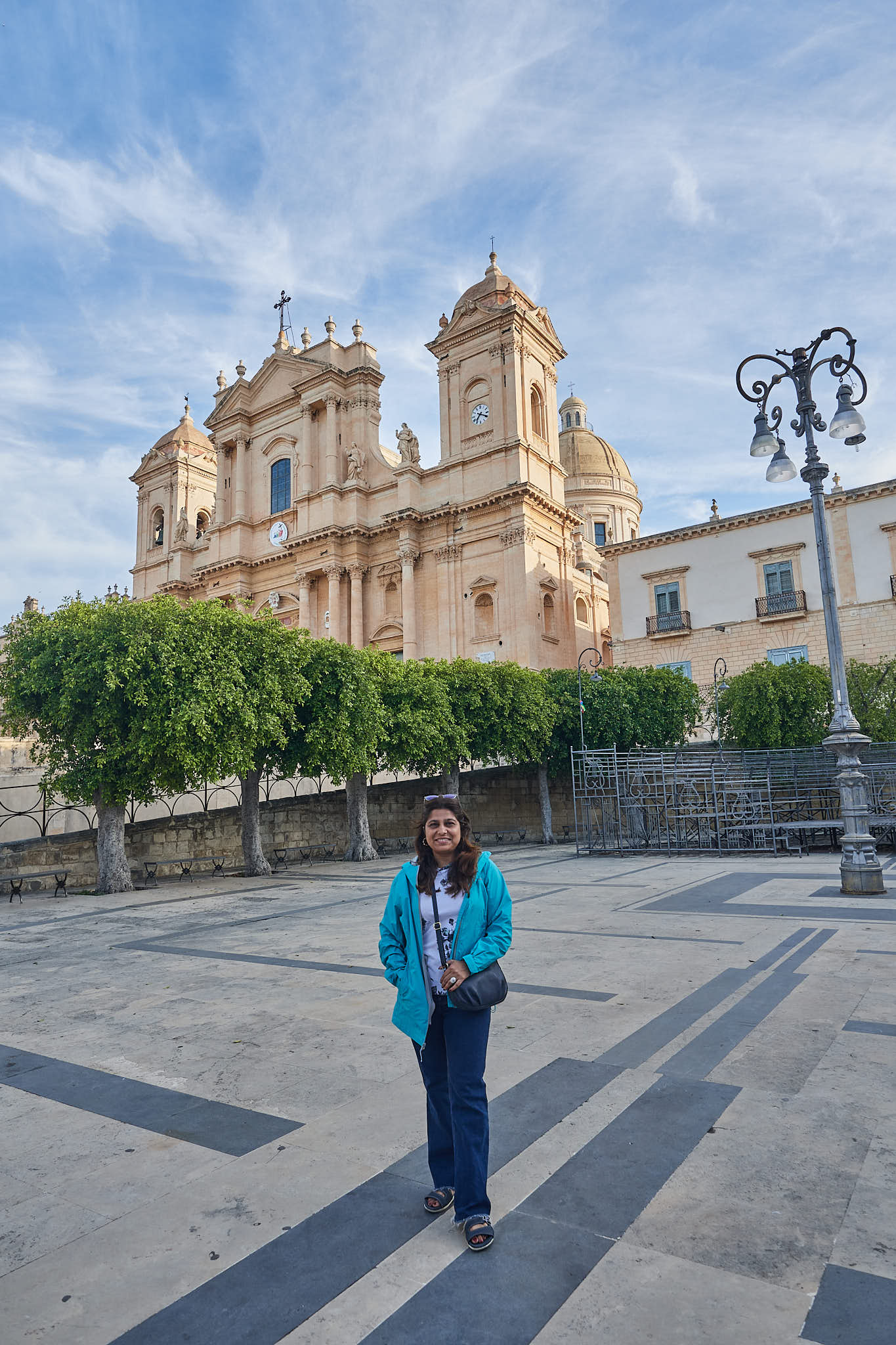 A selfie in the wide nave of the Cathedral of San Nicolo in Noto