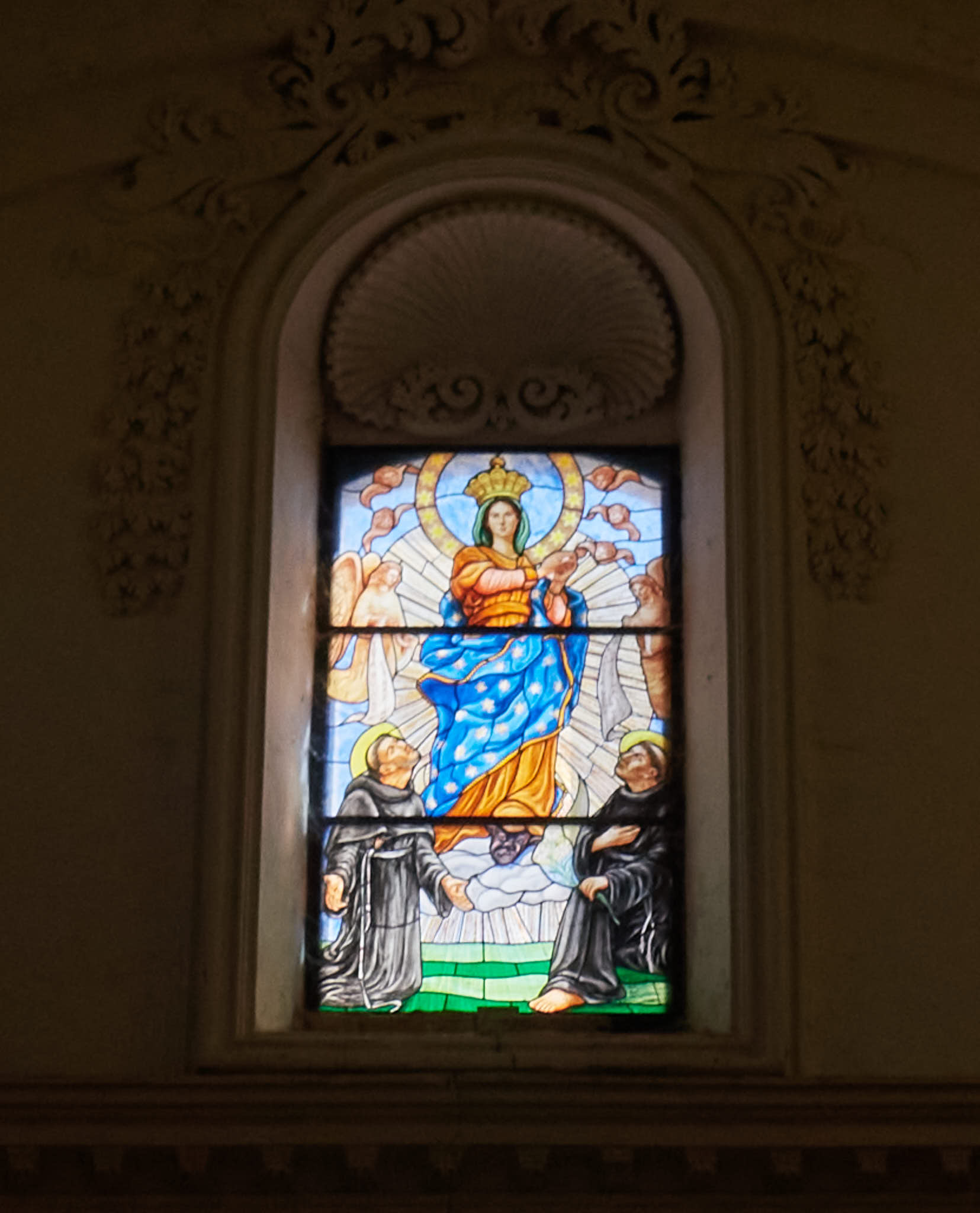 The church also has crosses made from the wood of shipwrecked boats of African refugees displayed throughout the church. The church also has various stained glass windows showing saints old and new and we were pleasantly surprised to see a window dedicated to Mother Teresa of Kolkata here in Noto.