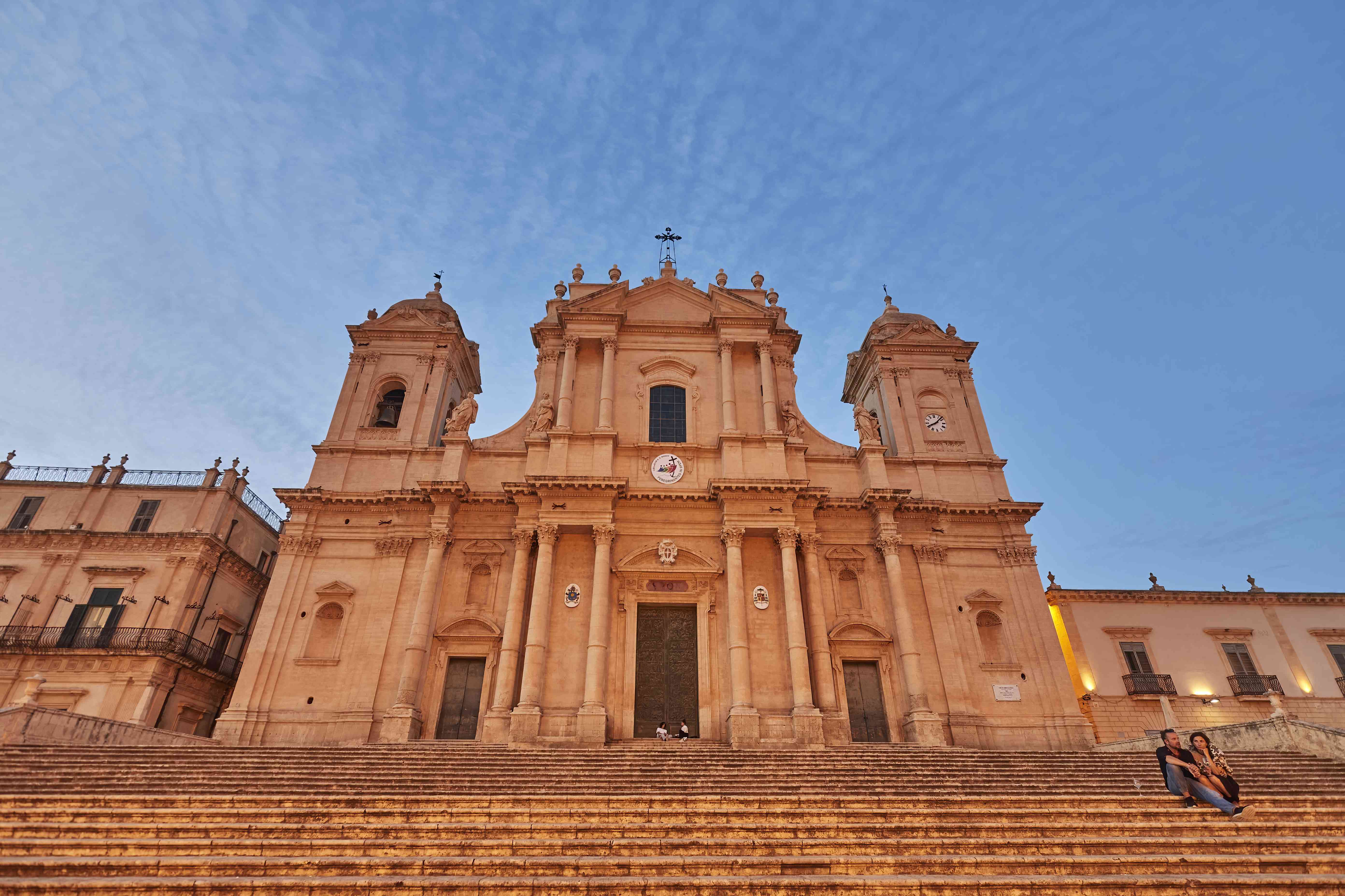 Enjoying some people watching on the steps of the Cathedral in Noto