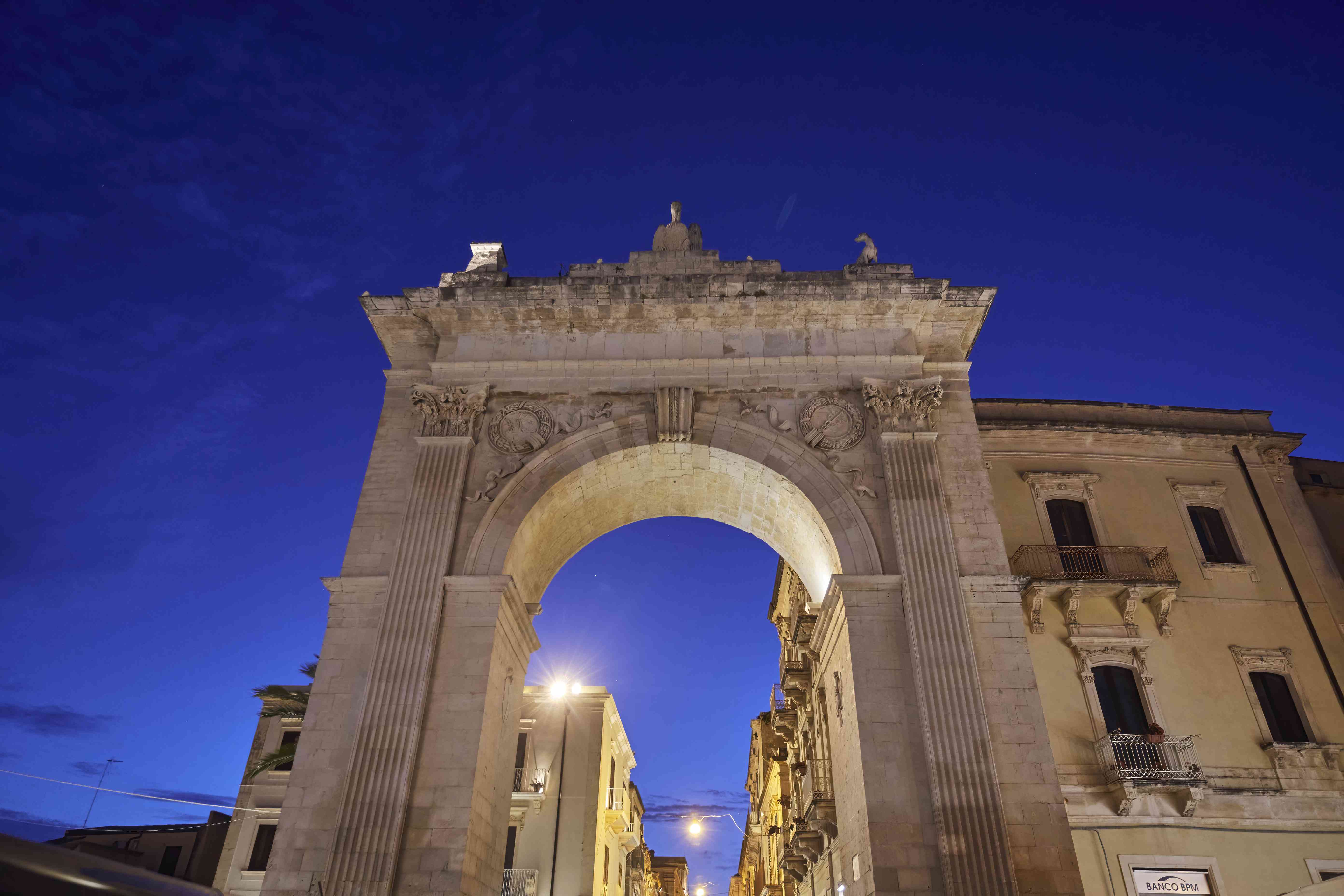 We finally reached the end of our Noto Centre walk as we reached the Porta Reale or the Royal gate built in 1838. It is topped by three different sculptures – A pelican , A tower and a Cirneco (local dog breed ) symbolising dedication, strength and fidelity! The gate area is closer to the parking lot and the bus stop and hence had a lot more people milling around. We decided to return her later to take more photos with fewer people around.