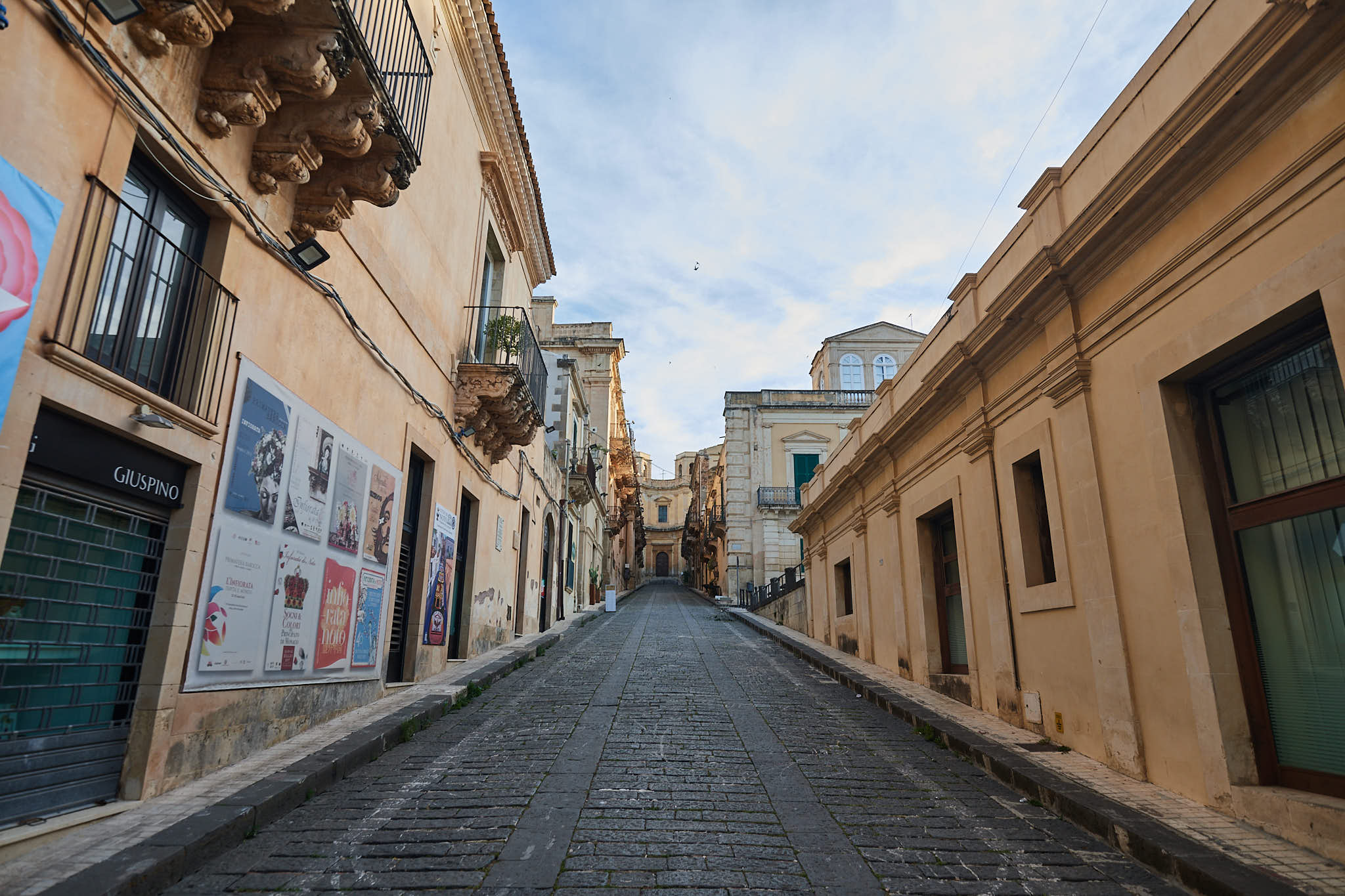 The Via Corrado Nicolaci with its decorated balconies in Noto