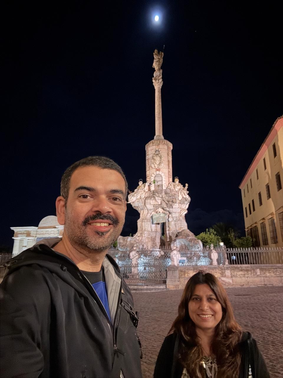 With the Plague monument on an extremely laid-back evening in Cordoba