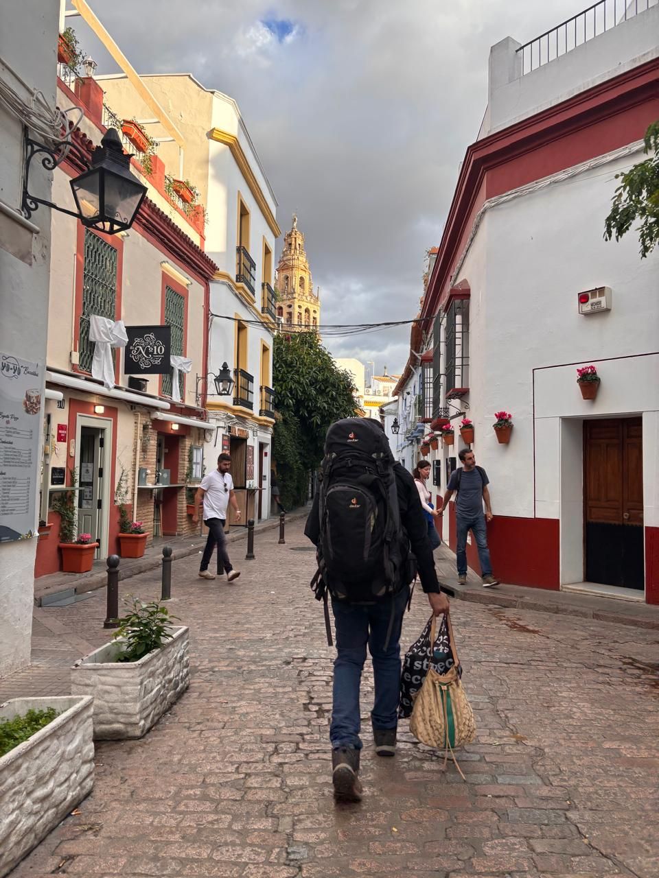 Walking towards the bell tower of the Mezquita through beautiful cobblestoned streets