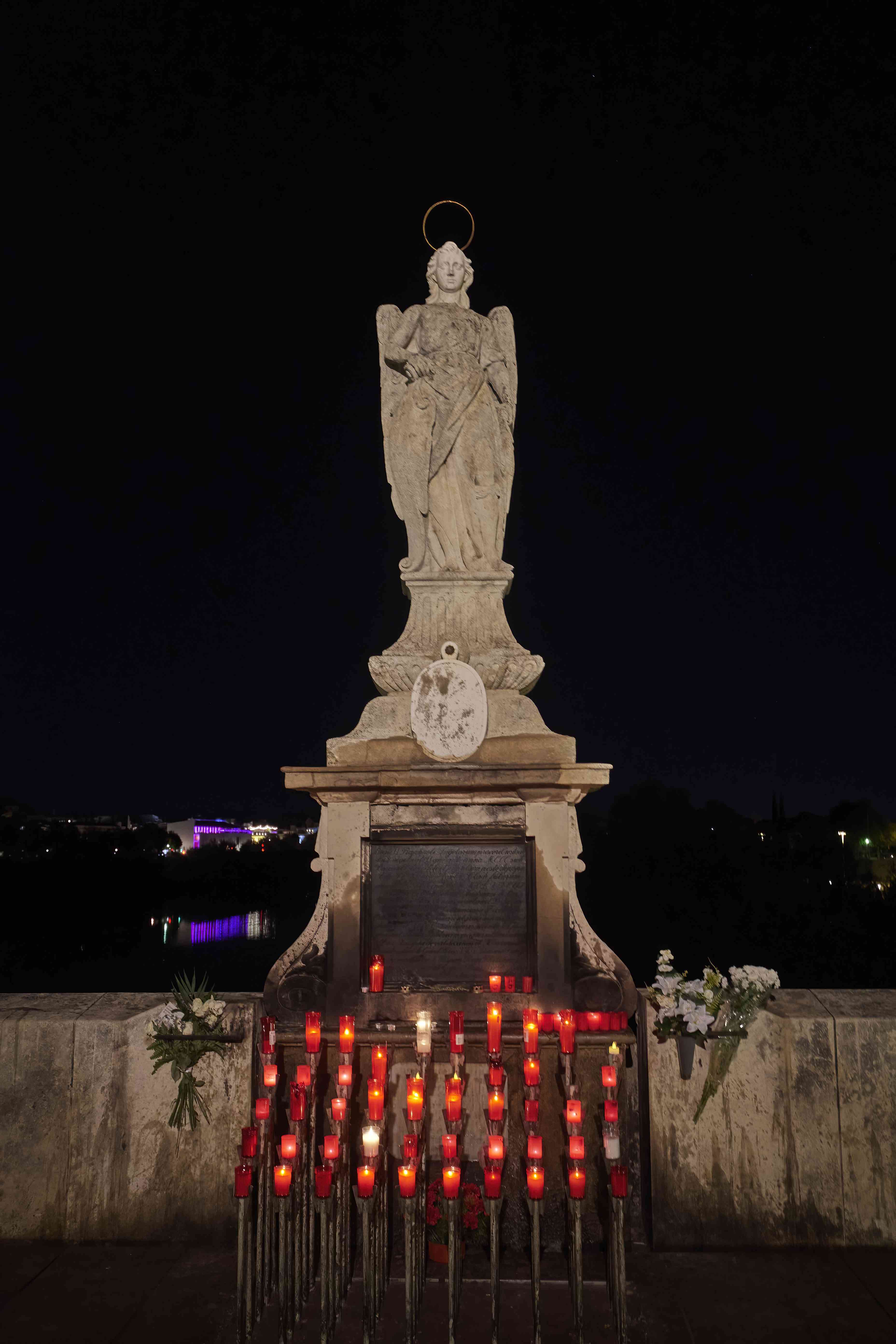 With a great meal in our tummies we started walking around the Mezquita towards the Guadalquivir river which runs through Cordoba and the old Roman era bridge across it. We first came to a huge Plague monument tower called the Triunfo de San Rafael built in the 18th century thanking the Archangel Rafael for protecting the city from the plague in the 17th century.