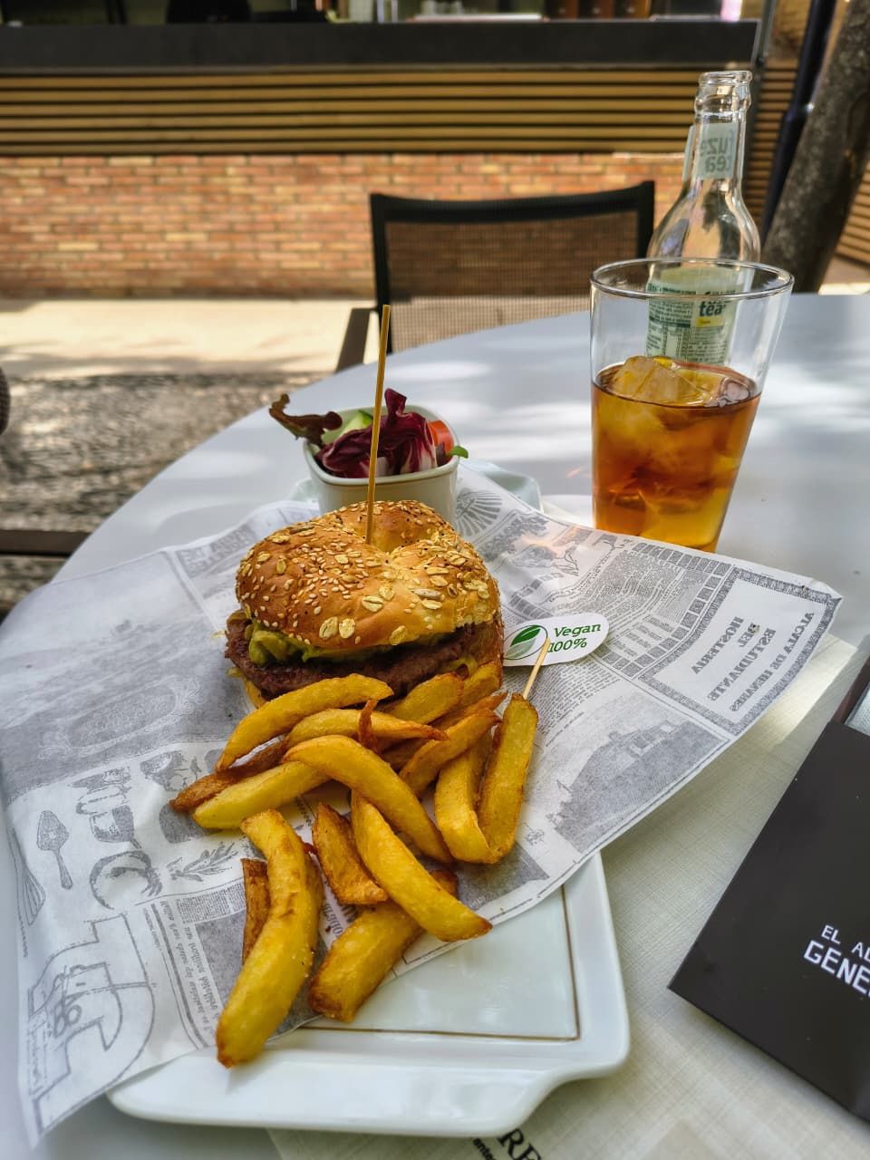 A Vegan Burger with Salad and Fries for the better half