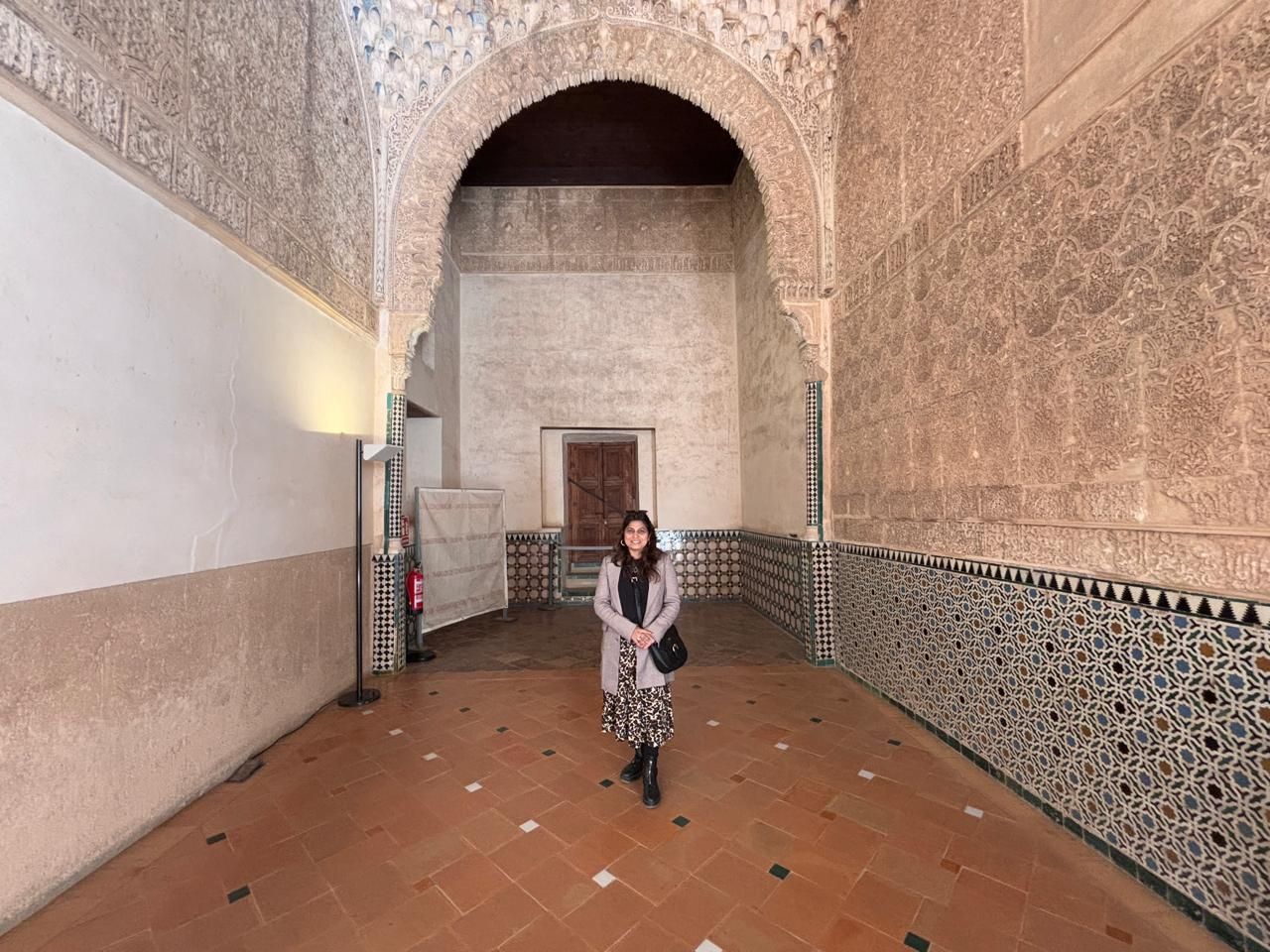 A modern restored floor and left wall and Moorish art everywhere else