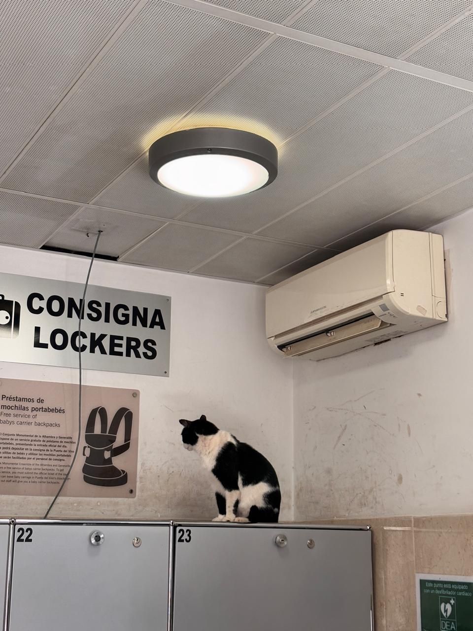 The resident feline inspector at the luggage storage at the Alhambra