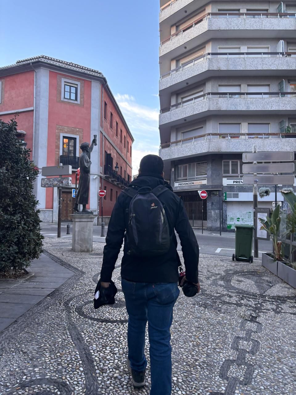 Walking to the bus stop to take the bus uptown the Alhambra