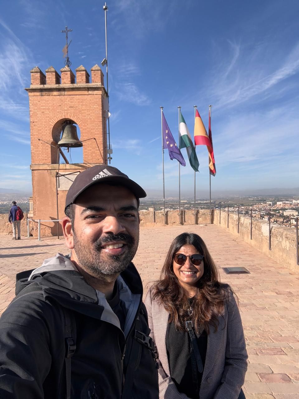 Happy us at the top of the Tallest tower of the Alcazaba
