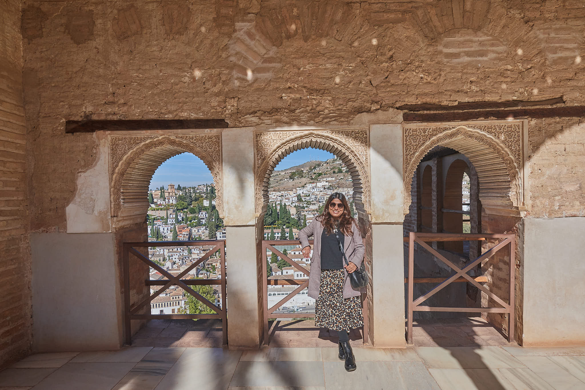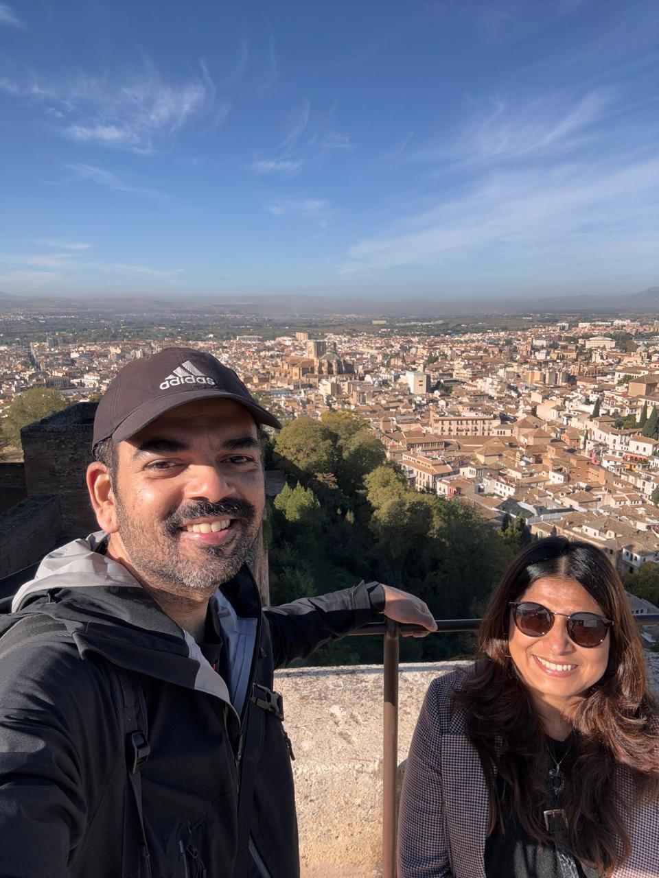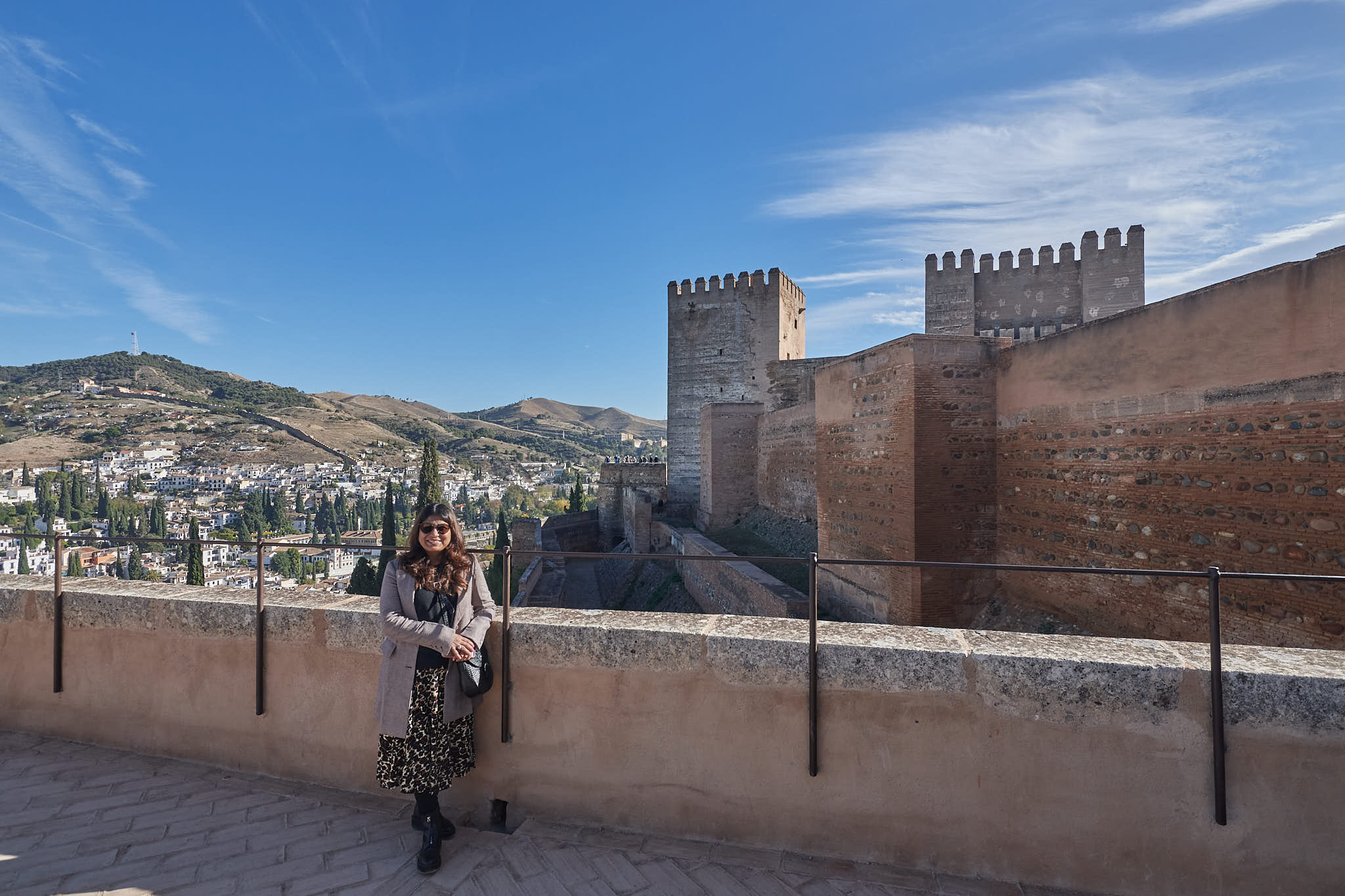 Posing with the Nasrid Palaces of the Alhambra high above at the Mirador del Rey Chico