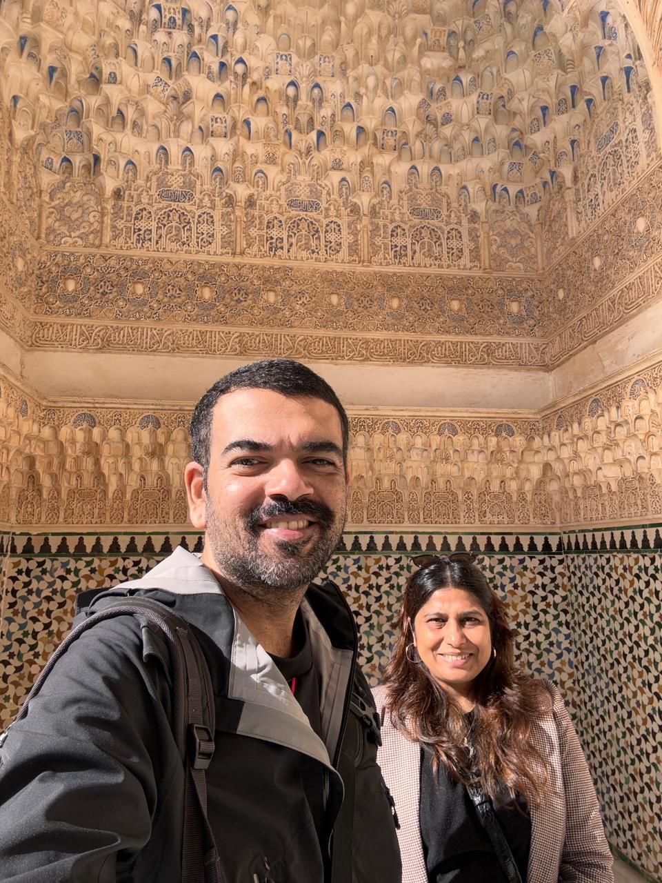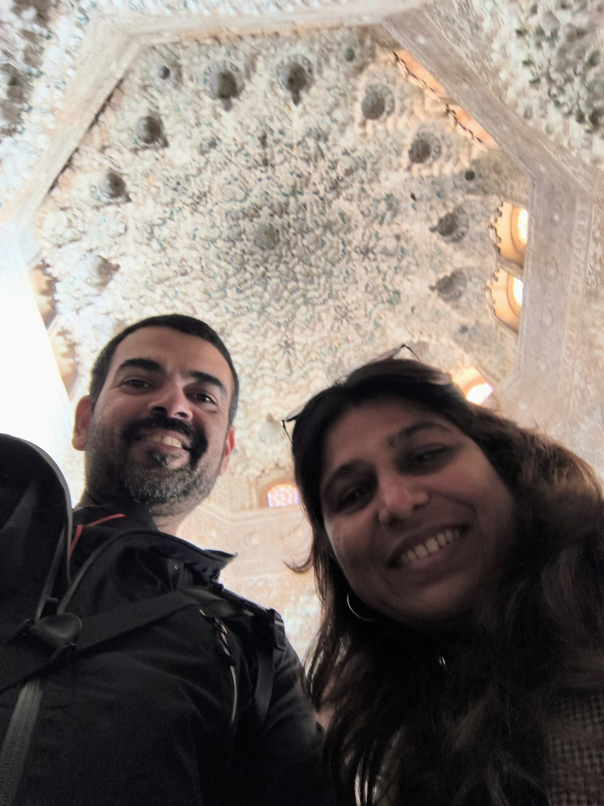 A selfie with the ceiling of the Hall of the Two Sisters