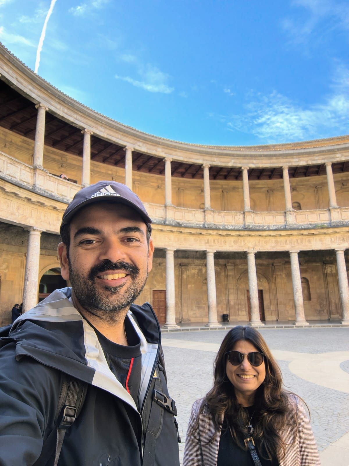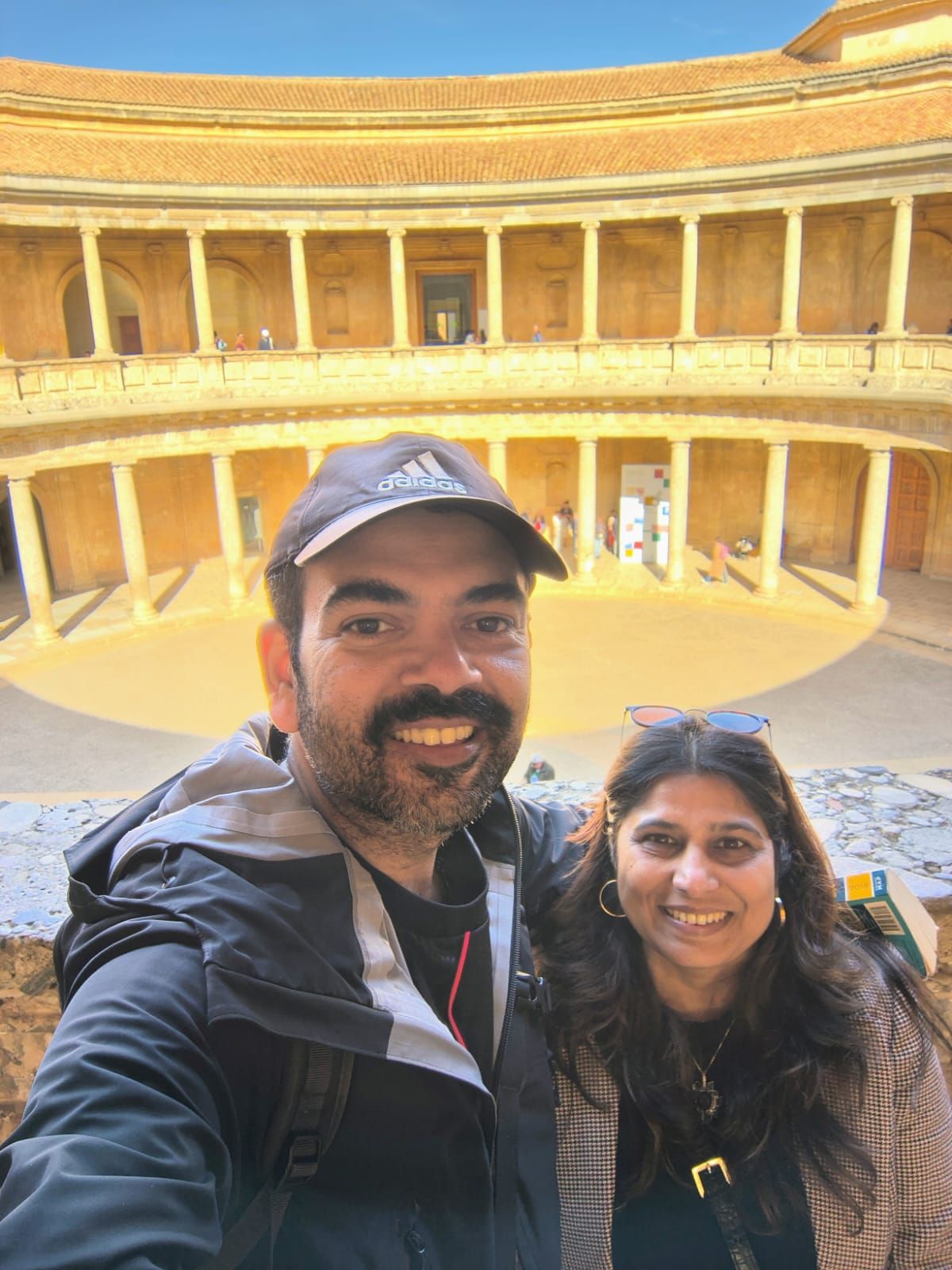 The better half poses with the two tiered rings of the Palace of Charles V