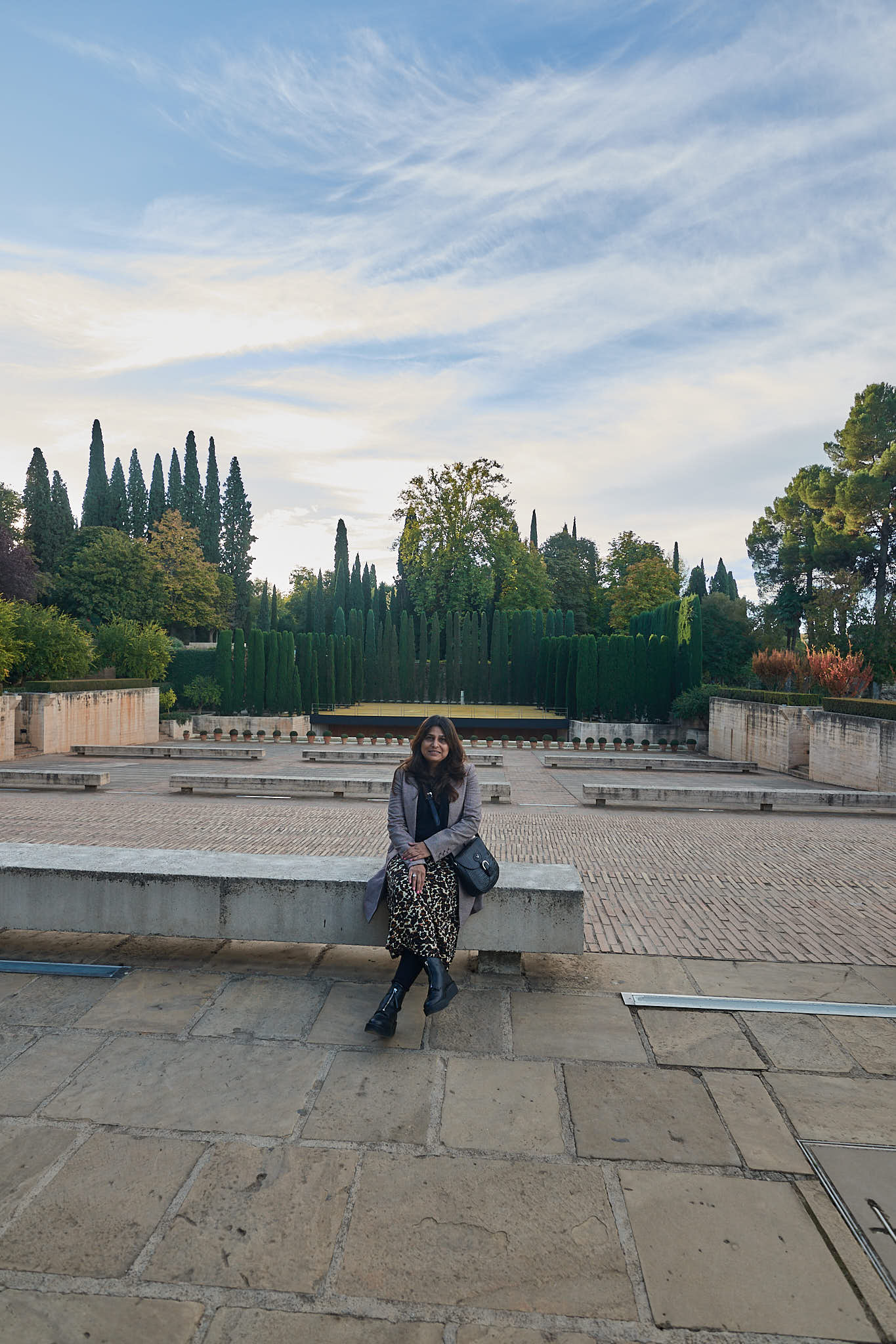 We then came to the top most viewpoint in the Generalife after exiting the summer palace and took a few more photos before starting our walk towards the fortified complex itself via a beautiful tall conifer lined avenue.