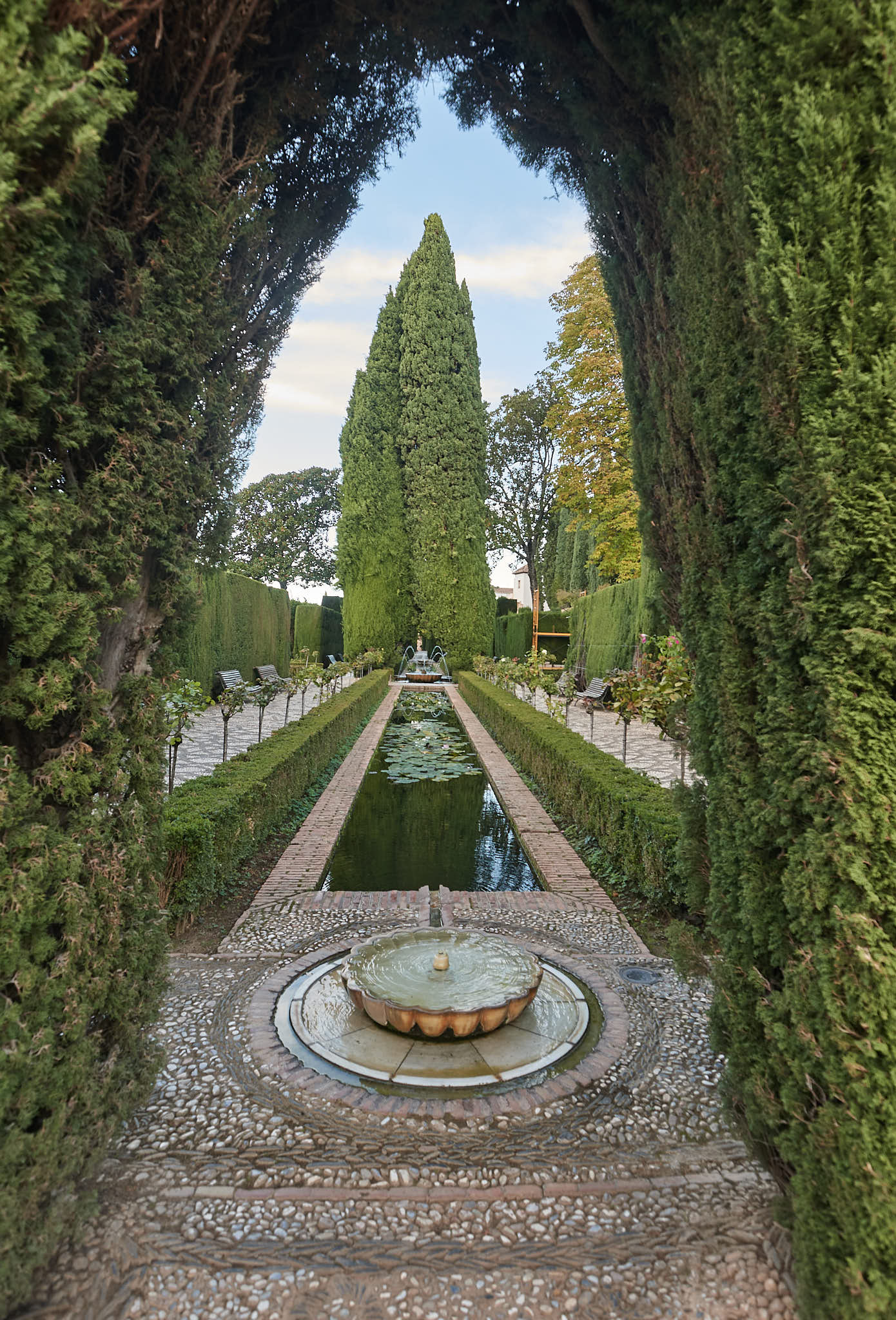 Walking through the beautiful Generalife Gardens