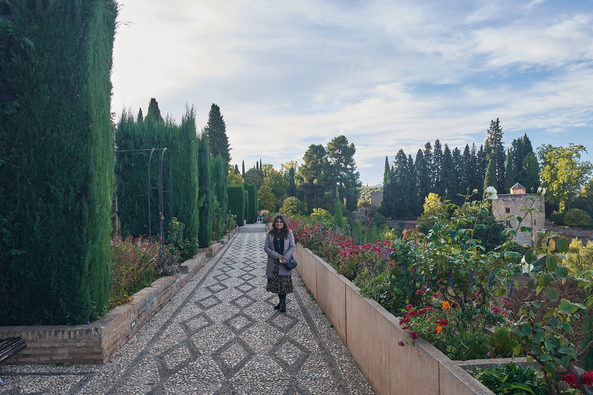Walking through the Generalife Gardens at the Alhambra & enjoying the view