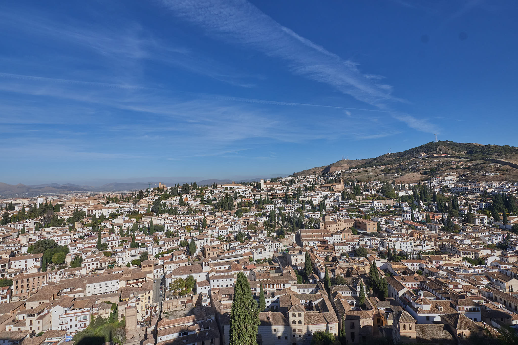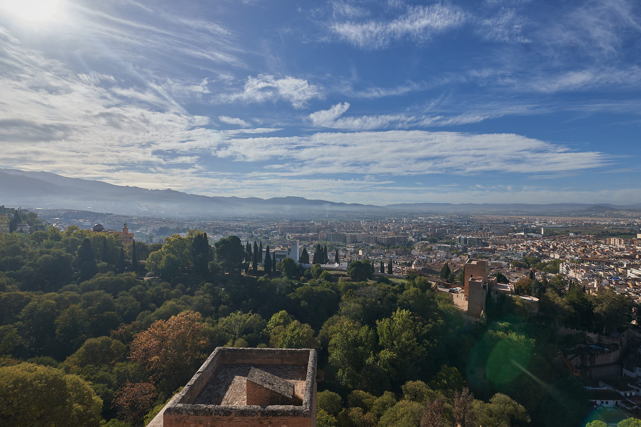 View of Granada and the Sierra Nevada mountains on the left