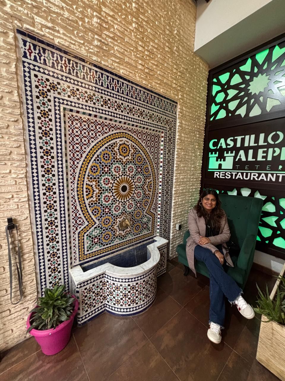 We chose the Castillo de Aleppo a Syrian restaurant for our lunch that afternoon in Granada as it would serve the Falafel that the better half wanted and also allow me to try something new. I ordered a plate of Kibbeh a la Parilla which was a typical Syrian dish made of bulgur wheat stuffedwith minced meat, nuts and spices and grilled crisp. The better half got her plate of Falafel with hummus and salad. We also got the drink we had discovered and enjoyed during our travels in Germany ( of all places !) – Ayran which was a buttermilk drink similar to Chaas back home. The restaurant also served complimentary freshly made Pita which was delicious. We enjoyed our delicious meal at leisure relishing every bite.