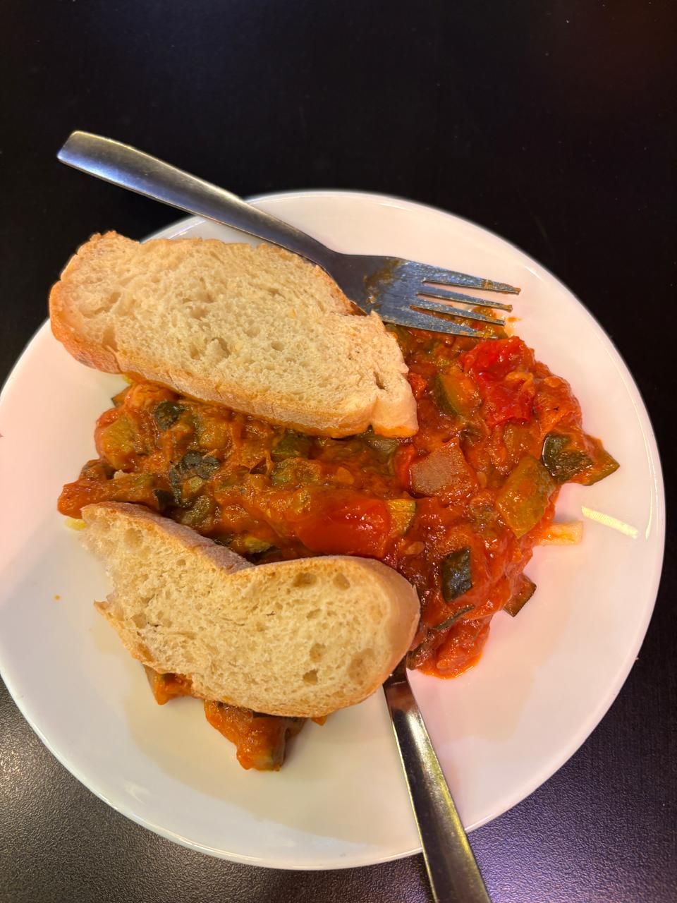 A thick vegetable stew with bread as free Tapas with our drinks