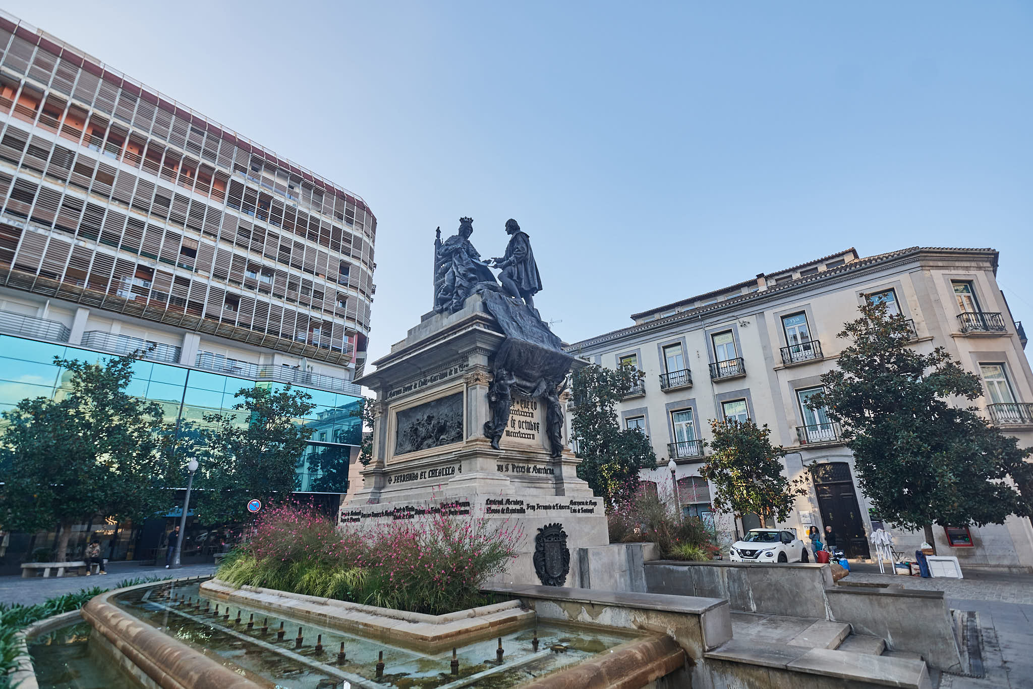The statue of Christopher Columbus & Queen Isabel at the Plaza