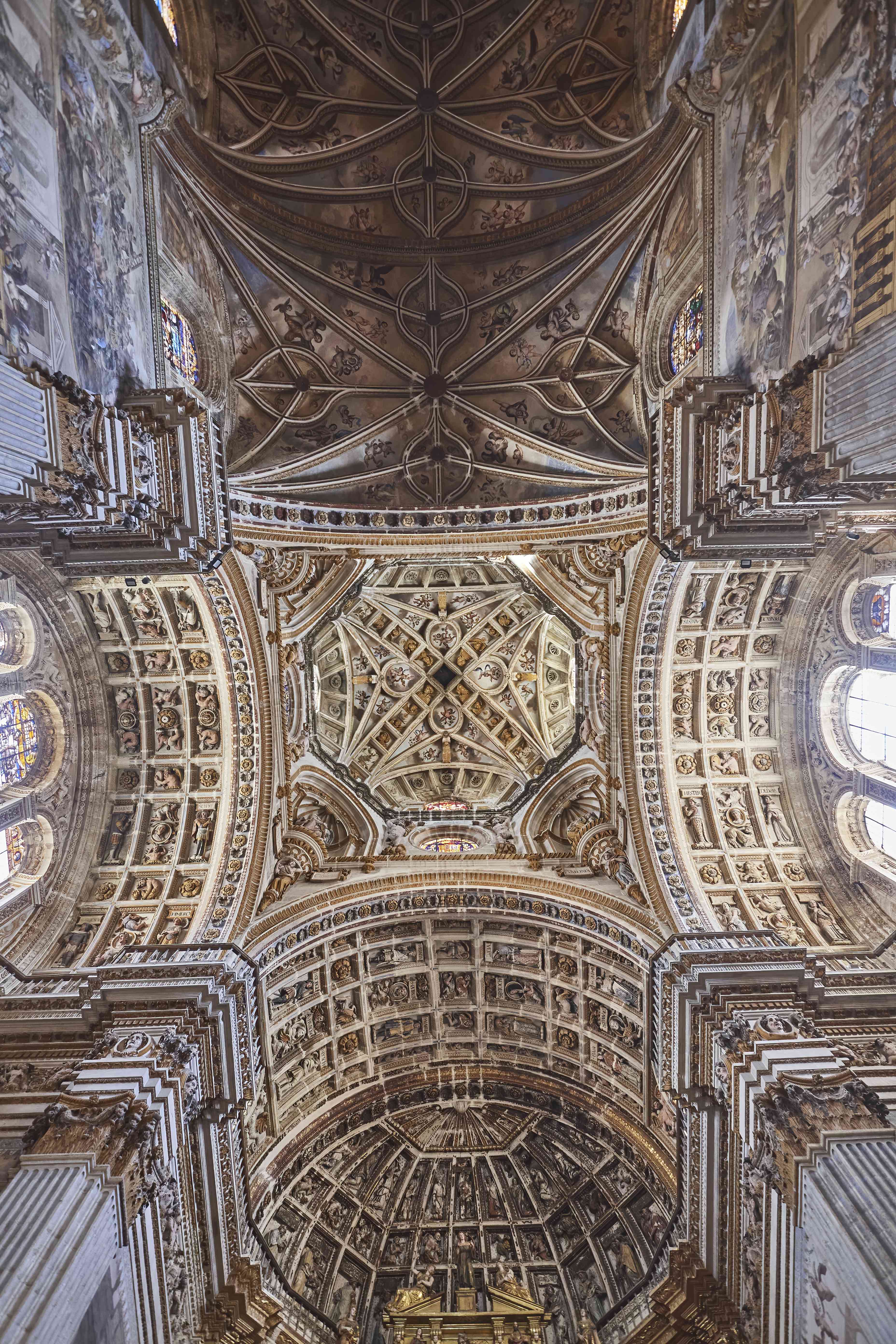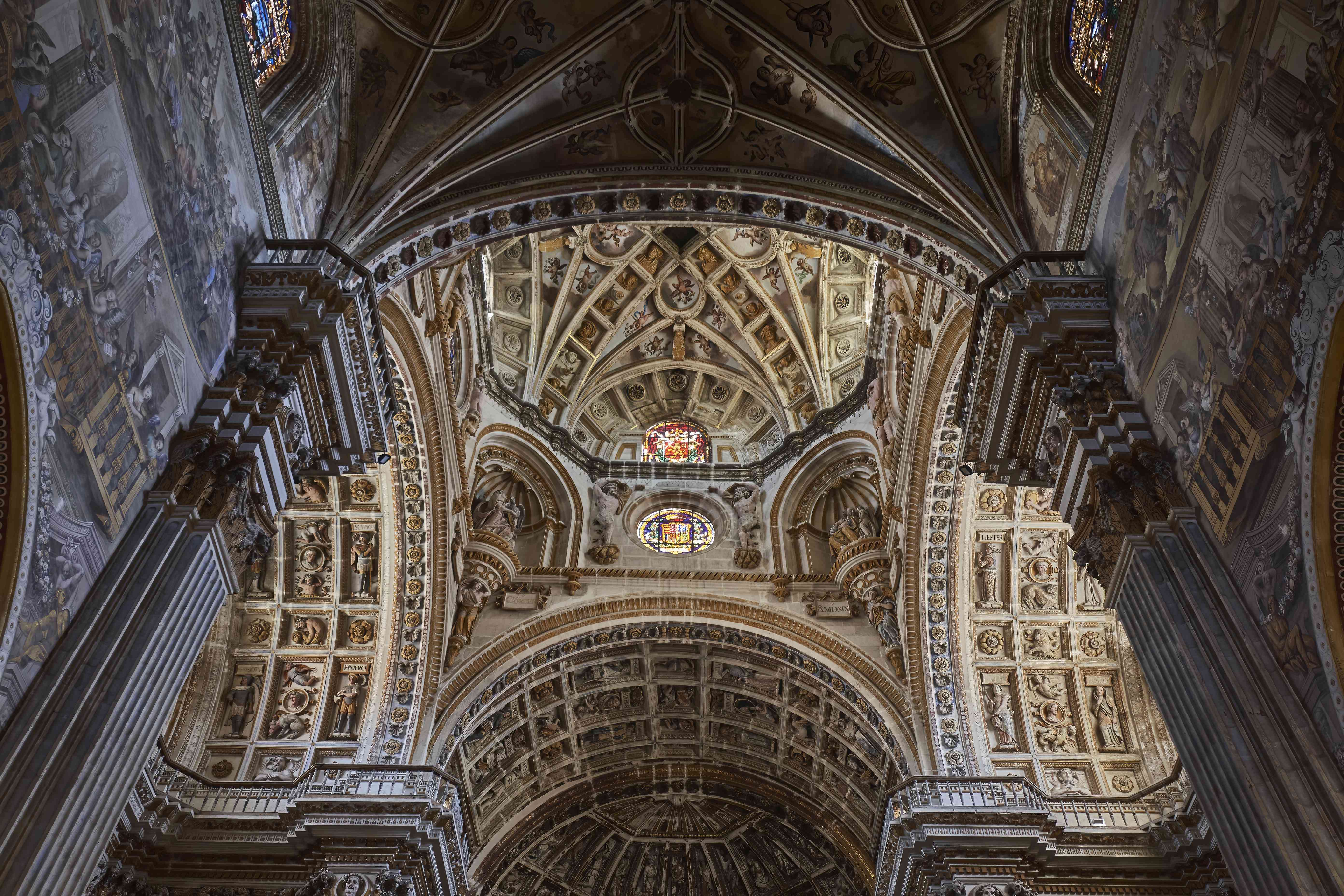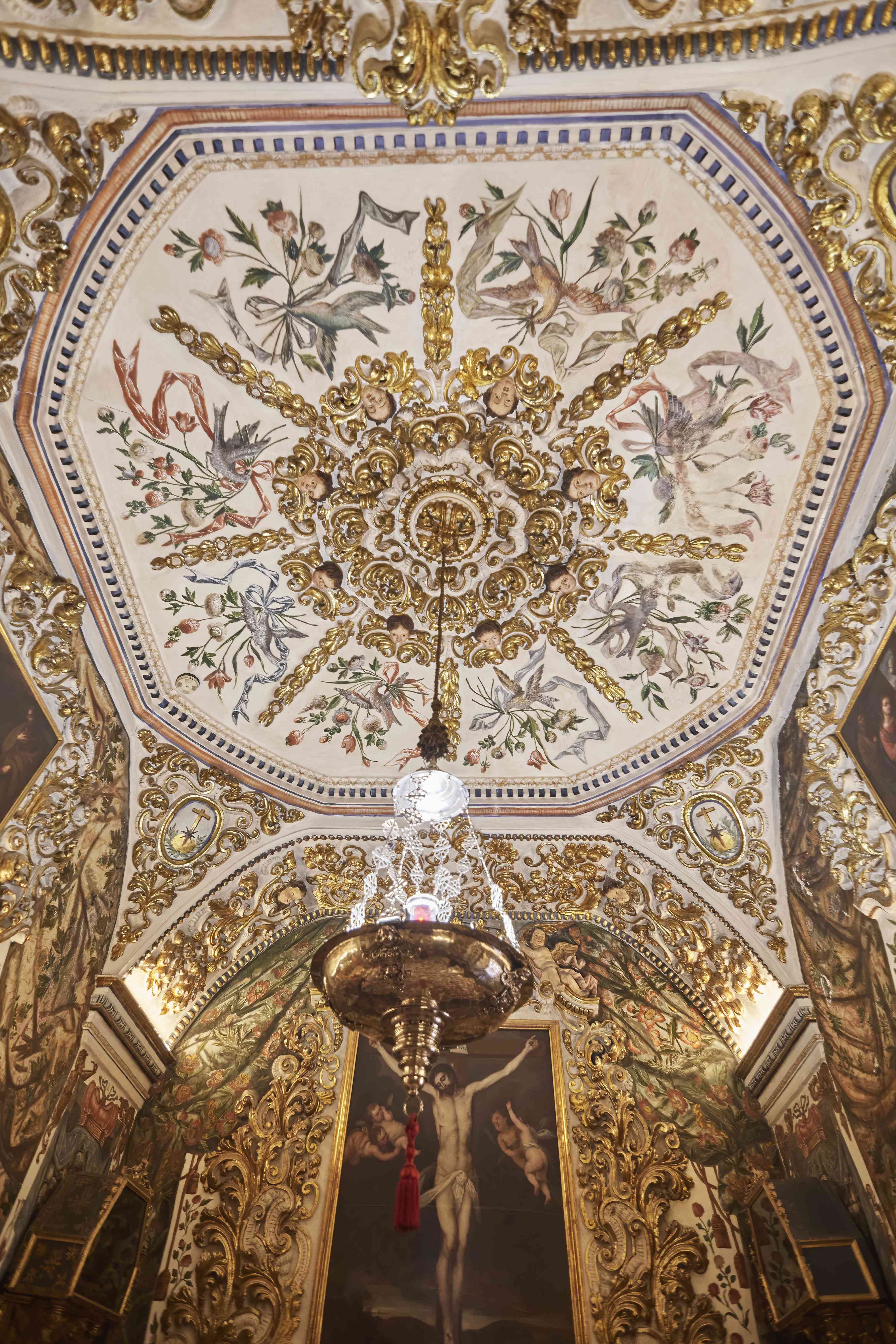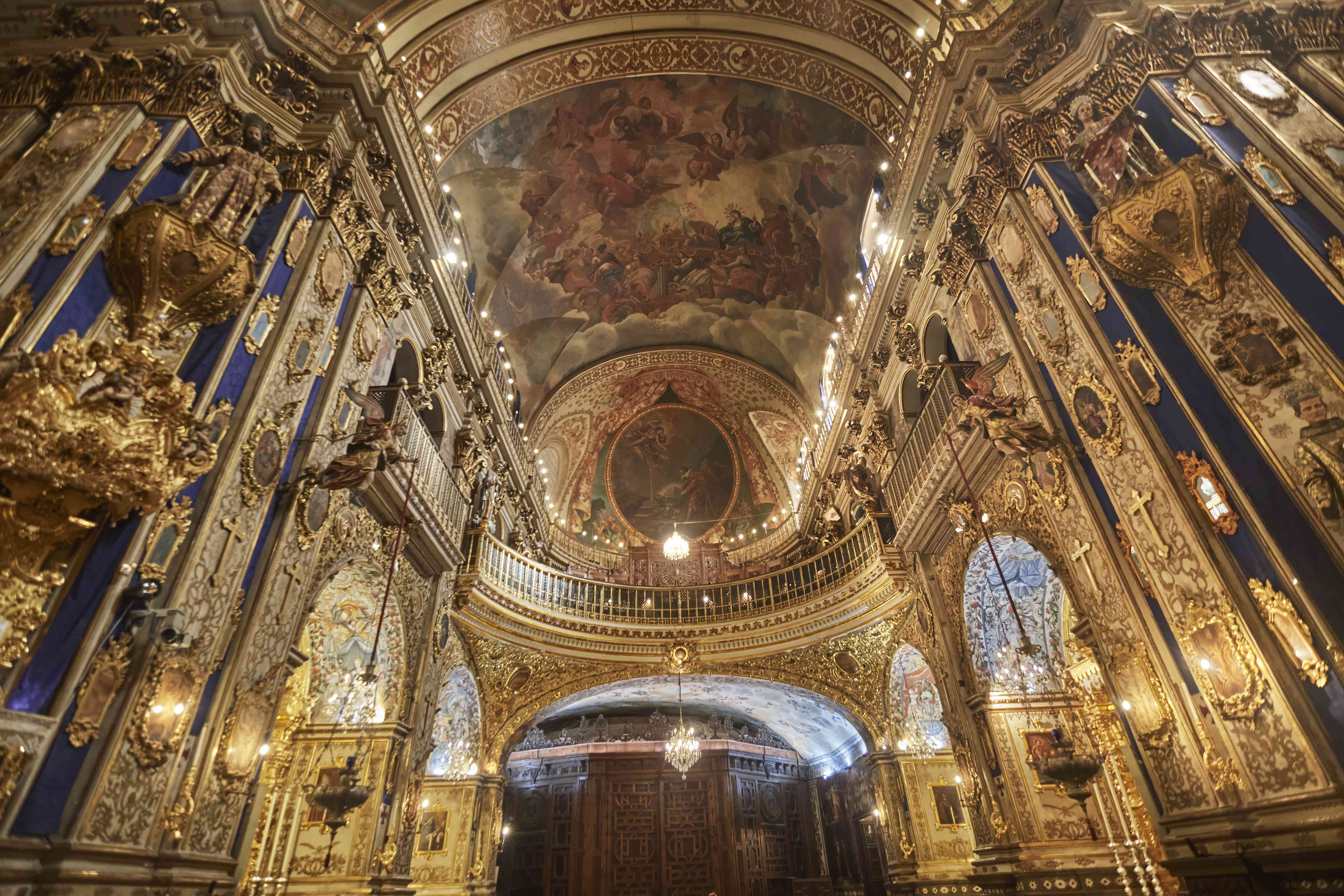 The amazing oil painted ceiling of the Basilica San Juan de Dios