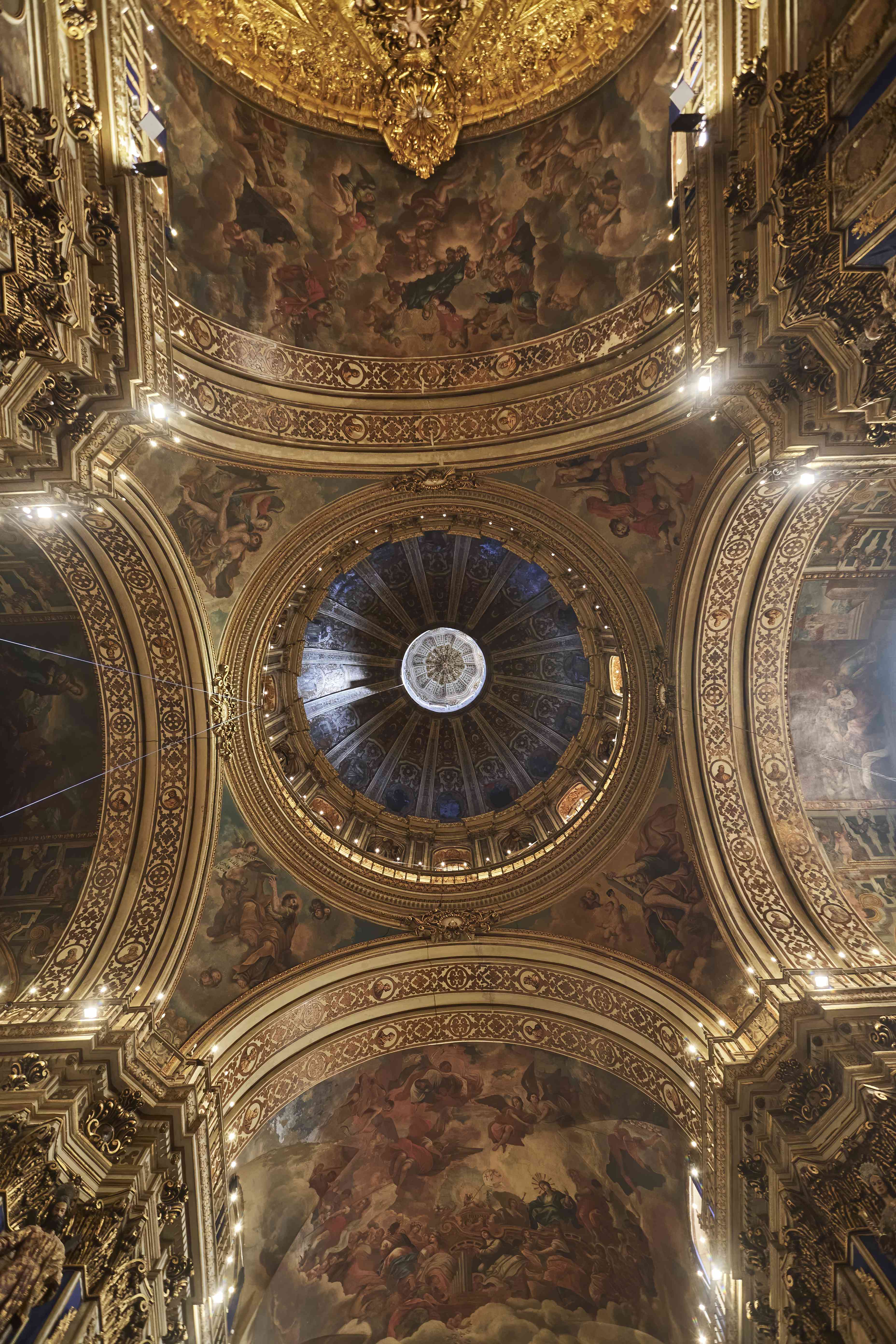 The beautiful ceiling of the Basilica from the altar end of the Basilica
